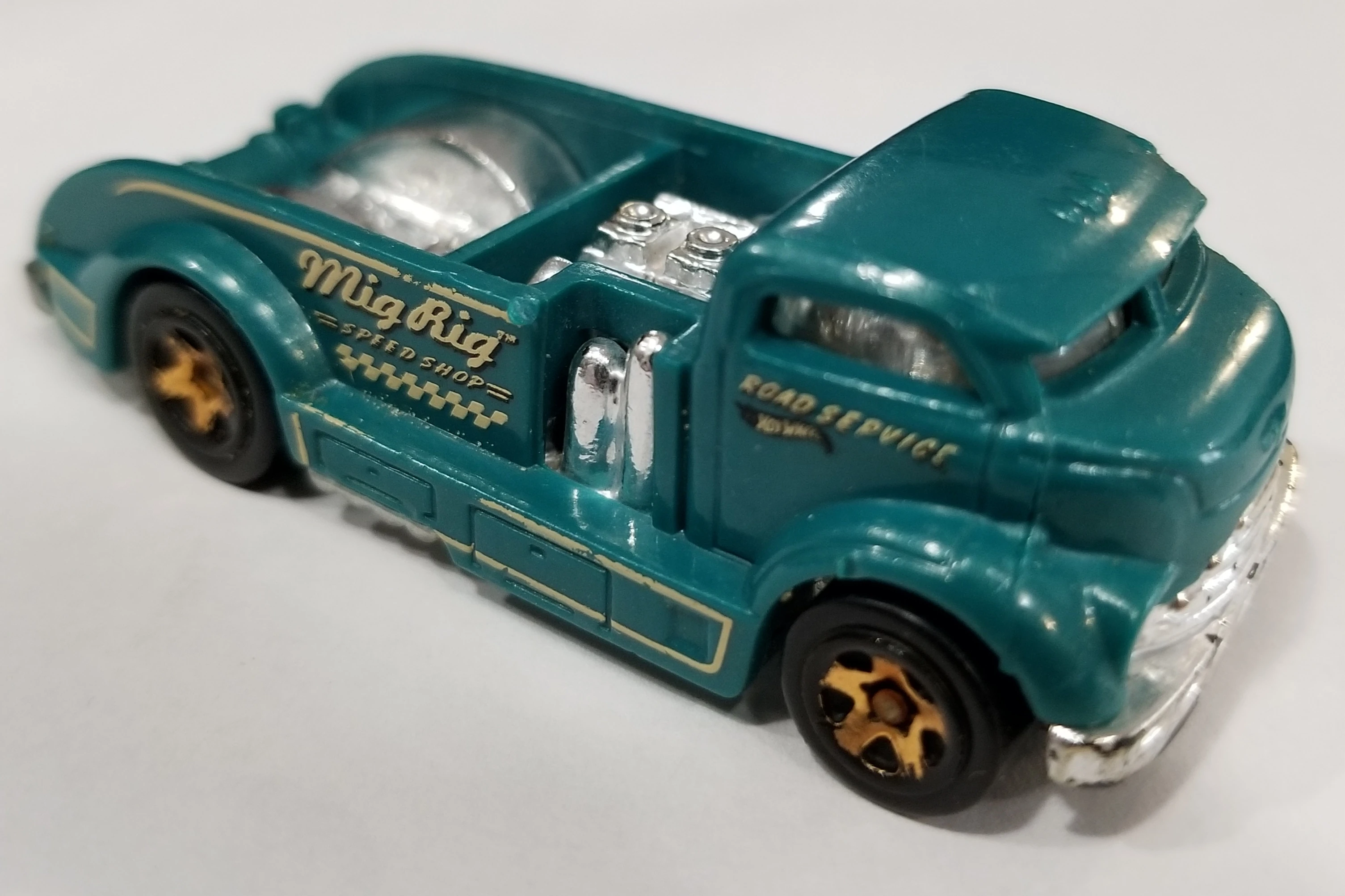 | 009/250 | 2015 | HW City: HW City Works | Dark Turquoise | Beige & Black tampos, 'Mig Rig Speed Shop' on sides, 'Road Service' & HW logo on doors | ZAMAC | Clear | Chrome | Gold 5SP | CFL37 | Malaysia | Base code(s): H09 |