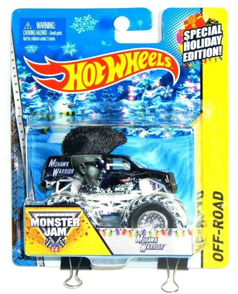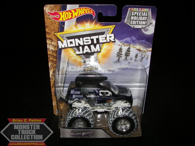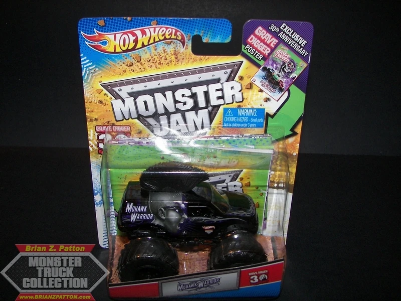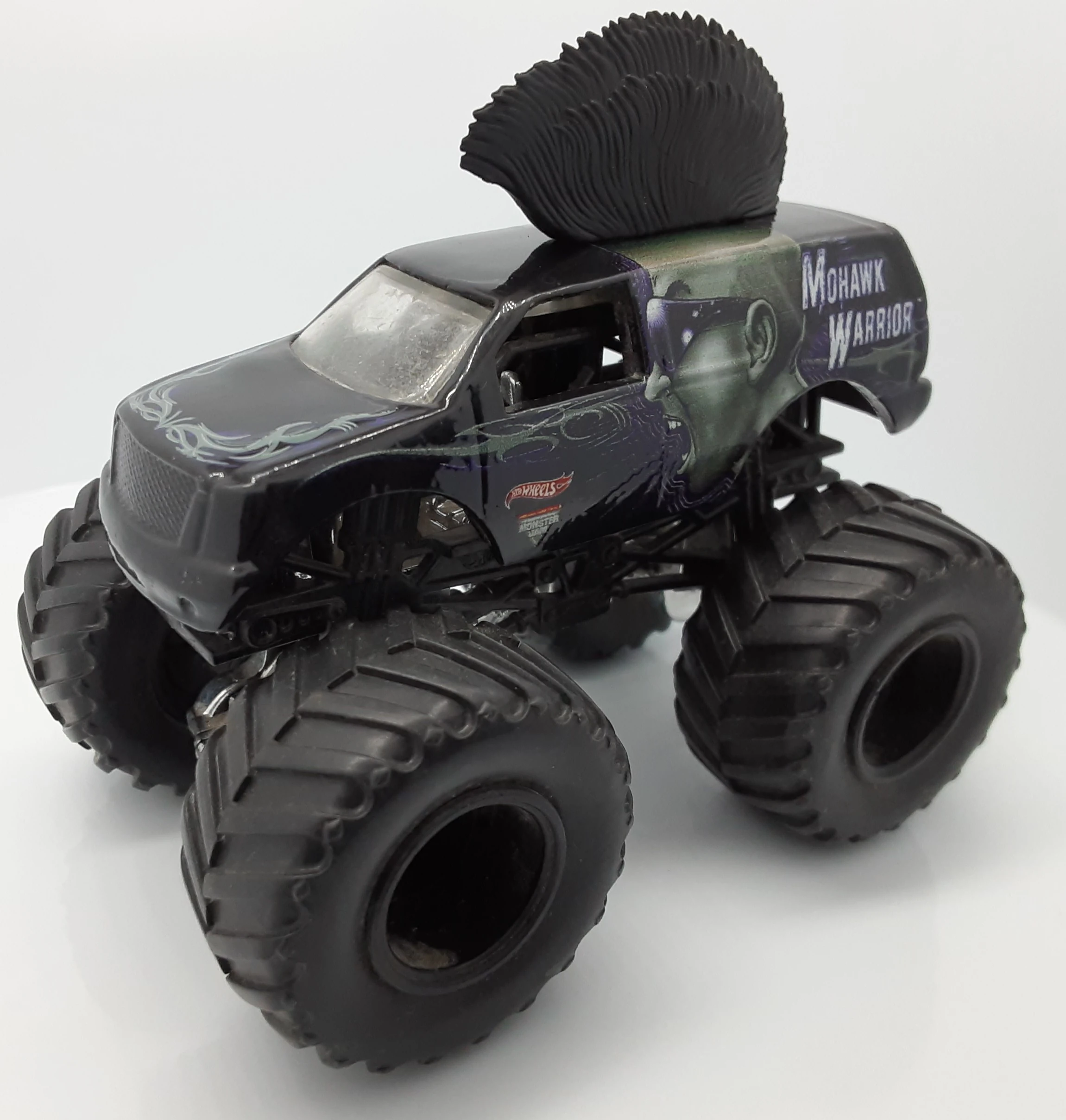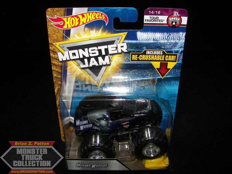 Mohawk Warrior is a truck owned by FELD Motorsports. Mohawk Warrior debuted at Monster Jam World Finals 11 as an encore performance and has been in competition since late 2010. The truck gets its name from the original driver, George Balhan, who is known for his mohawk and is the successor to Escalade. The truck is probably most famous for the giant mohawk featured on the truck's roof. A purple Mohawk Warrior Hot Wheels toy was released in 2015, but was not made into a real truck until 2017 when it debuted in Saudi Arabia.