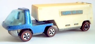 | 1970 | Heavyweights | Spectraflame Aqua | Gold 'Hotwheels Van Lines' on side of trailer | Unpainted / Metal | Blue | White or Dark Brown | RL | 6455 | Hong Kong | Gray or White trailer |