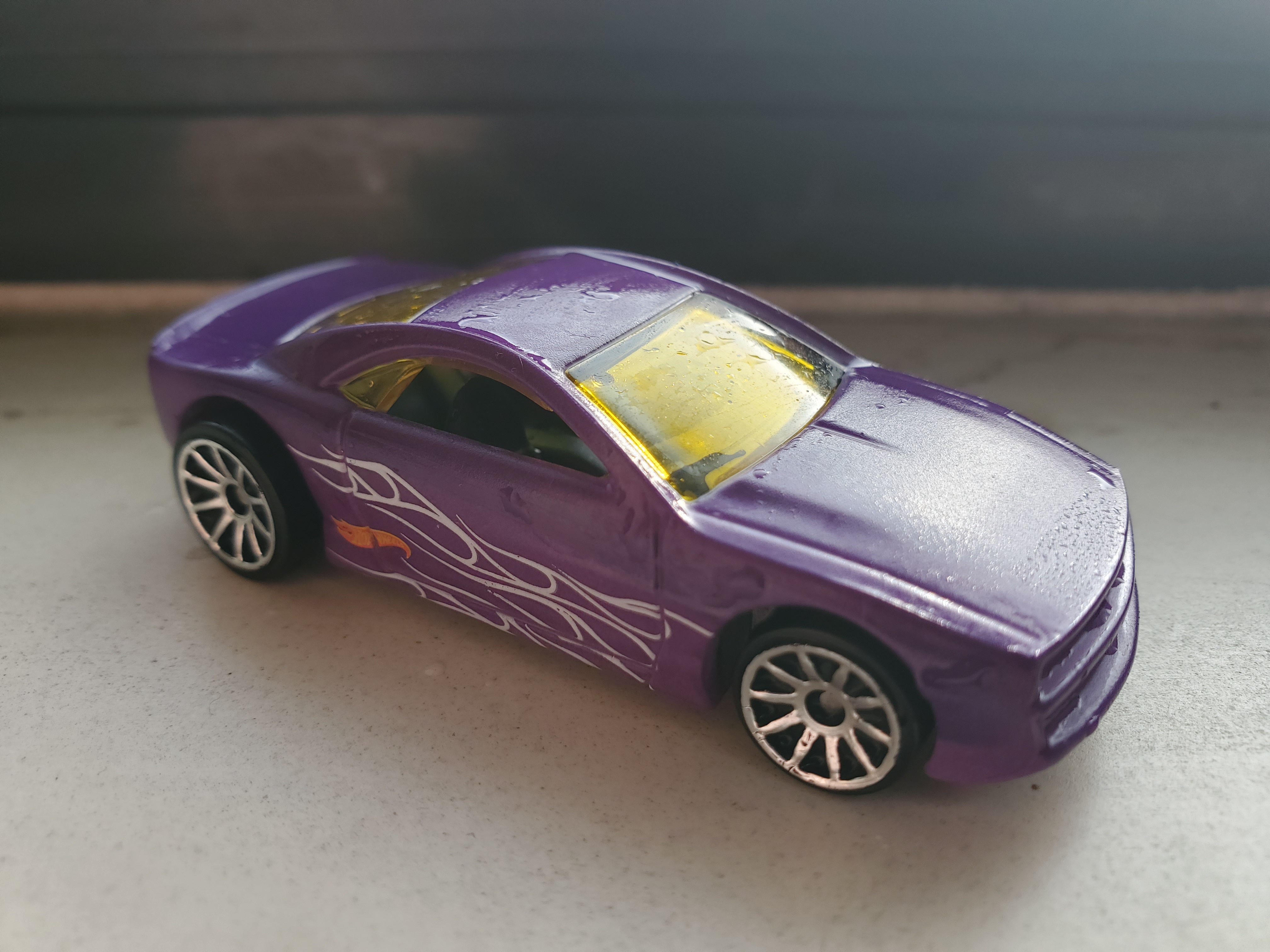 Metalflake Orange | Purple Stripe on hood, side purple HW Logo on front quarter panel | Gray / Plastic |