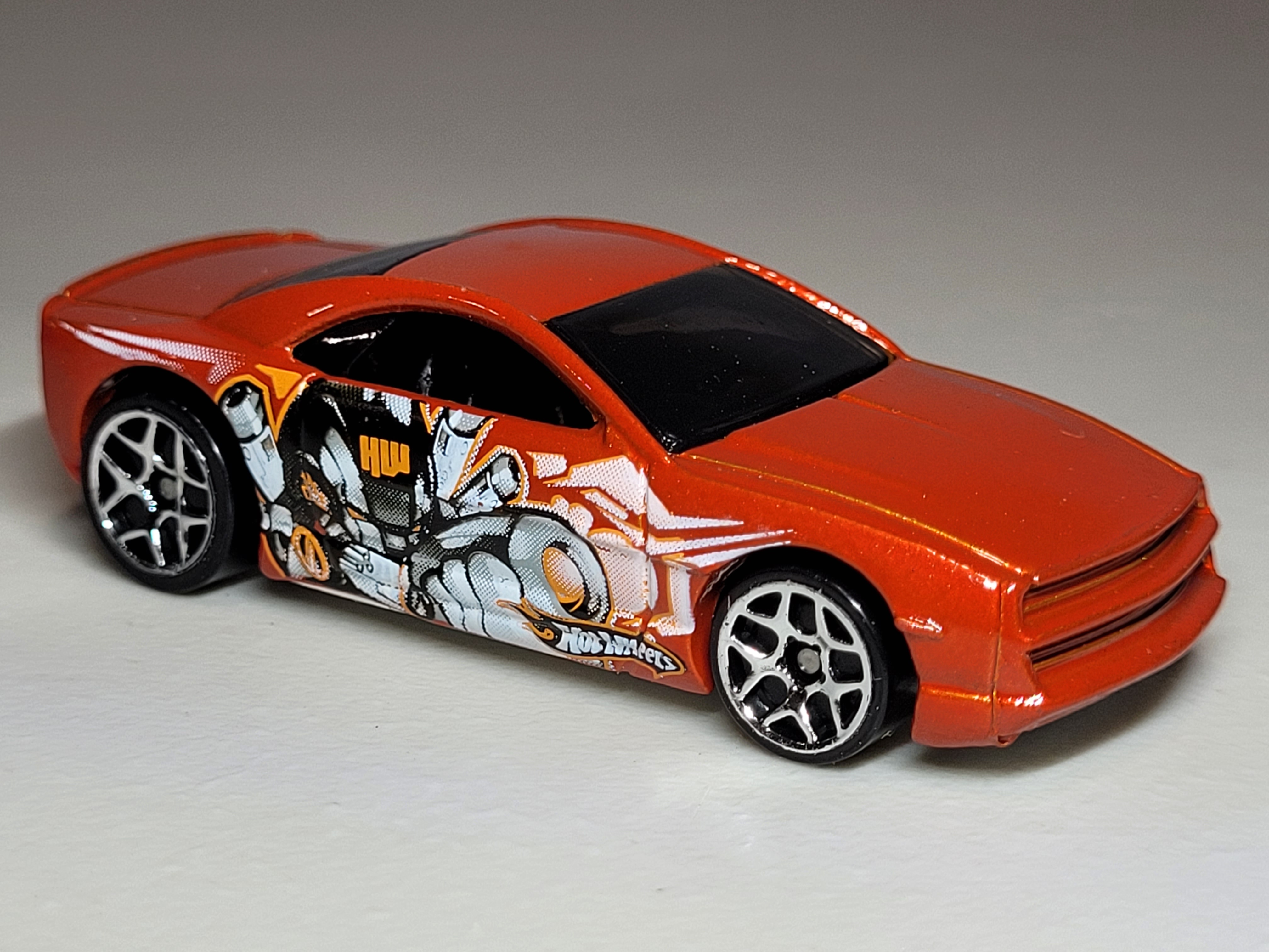 Pearl Orange | Purple Stripe on hood, side purple HW Logo on front quarter panel | Gray / Plastic |