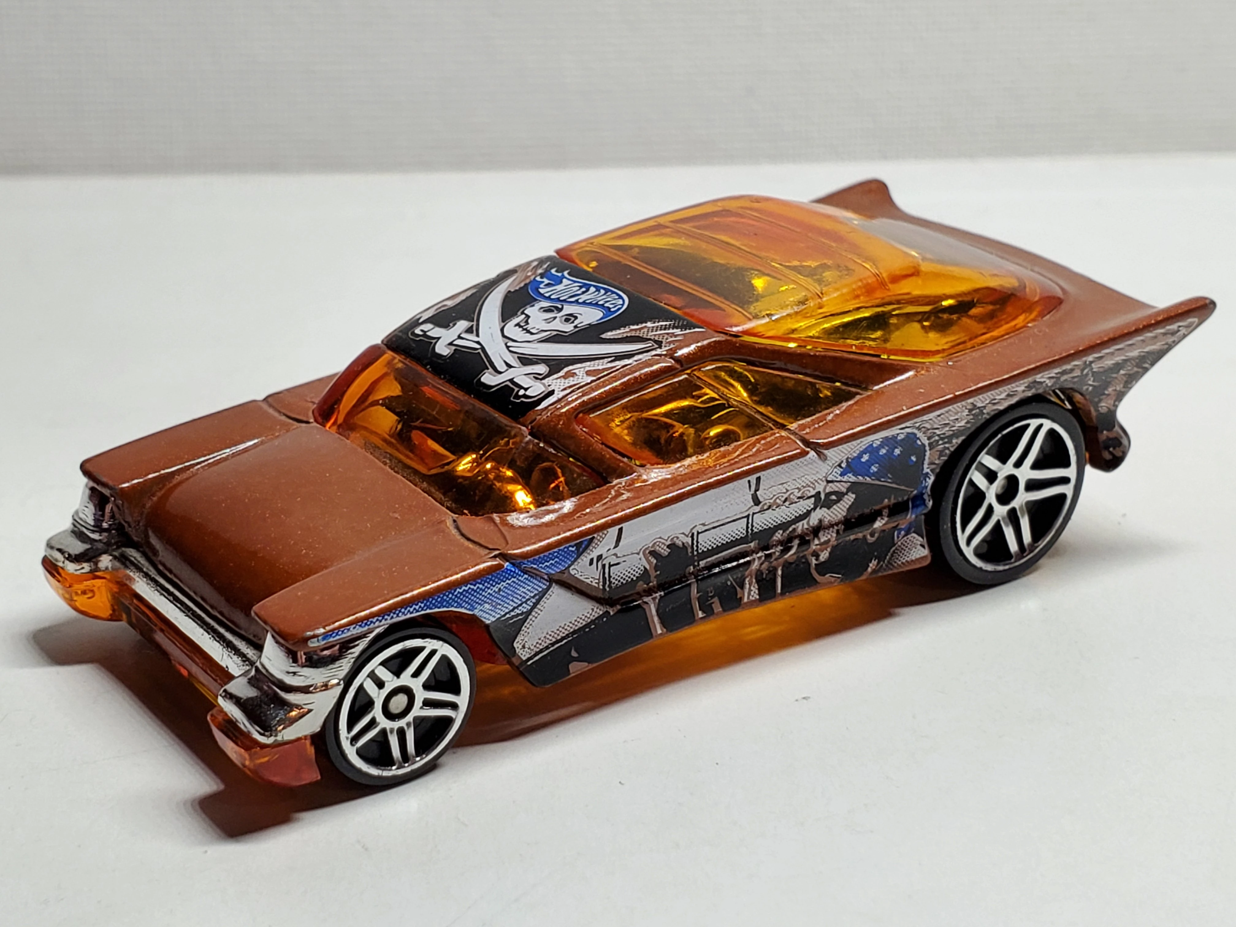 Metalflake Brown | Blue & White pirate on side, skull & cross bones on roof | Transparent Orange / Plastic |