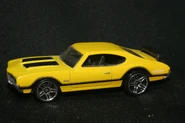 Spectraflame Yellow | White stripes & "442" on sides; white hood scoops; black spoiler; "HWC" on rear California license plate; painted taillights | Chrome / Metal |