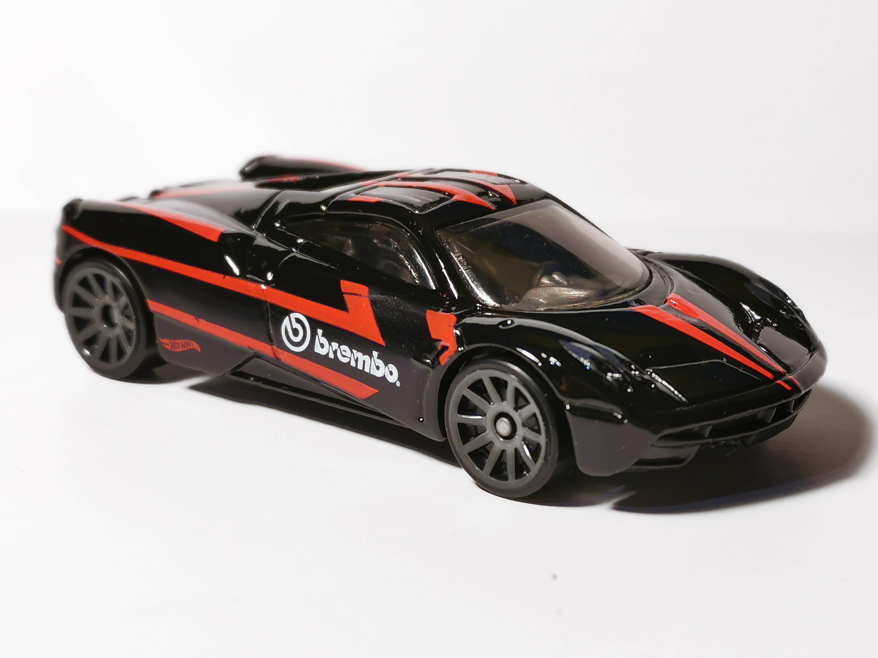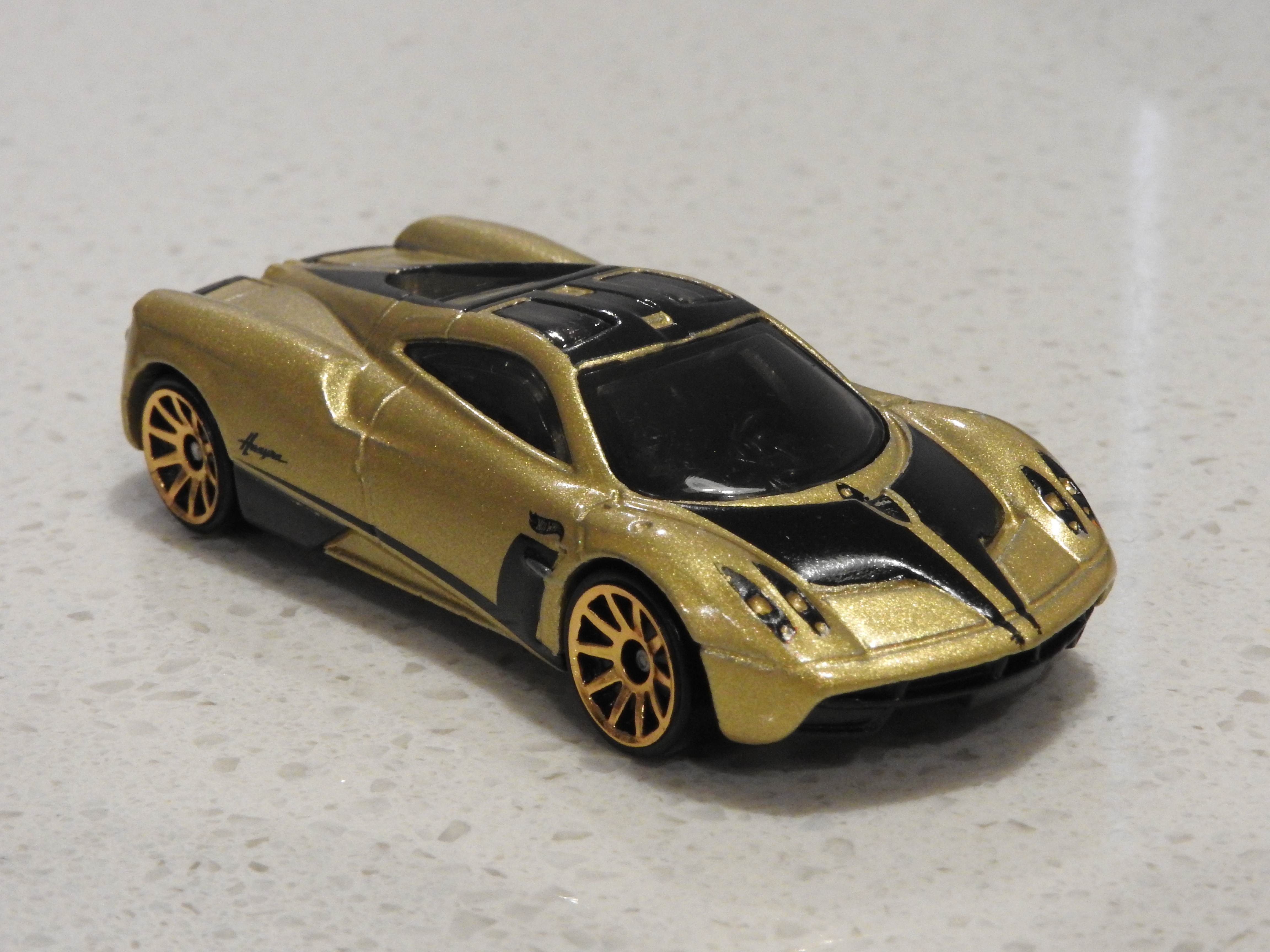 | 198/250 | 2014 | HW Workshop: HW All Stars | Metalflake Blue | Gray stripes on roof & hood, headlights dots & silver "Pagani Huayra" logo on the back | Black / Plastic |