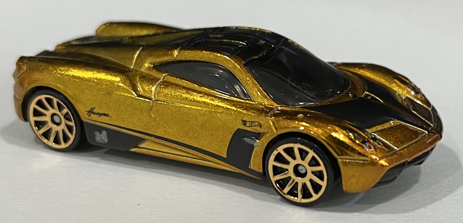 | 198/250 | 2014 | HW Workshop: HW All Stars | Metalflake Green | Brown Stripes on roof & hood, headlight dots & silver "Pagani Huayra" logo on the back | Black / Plastic |
