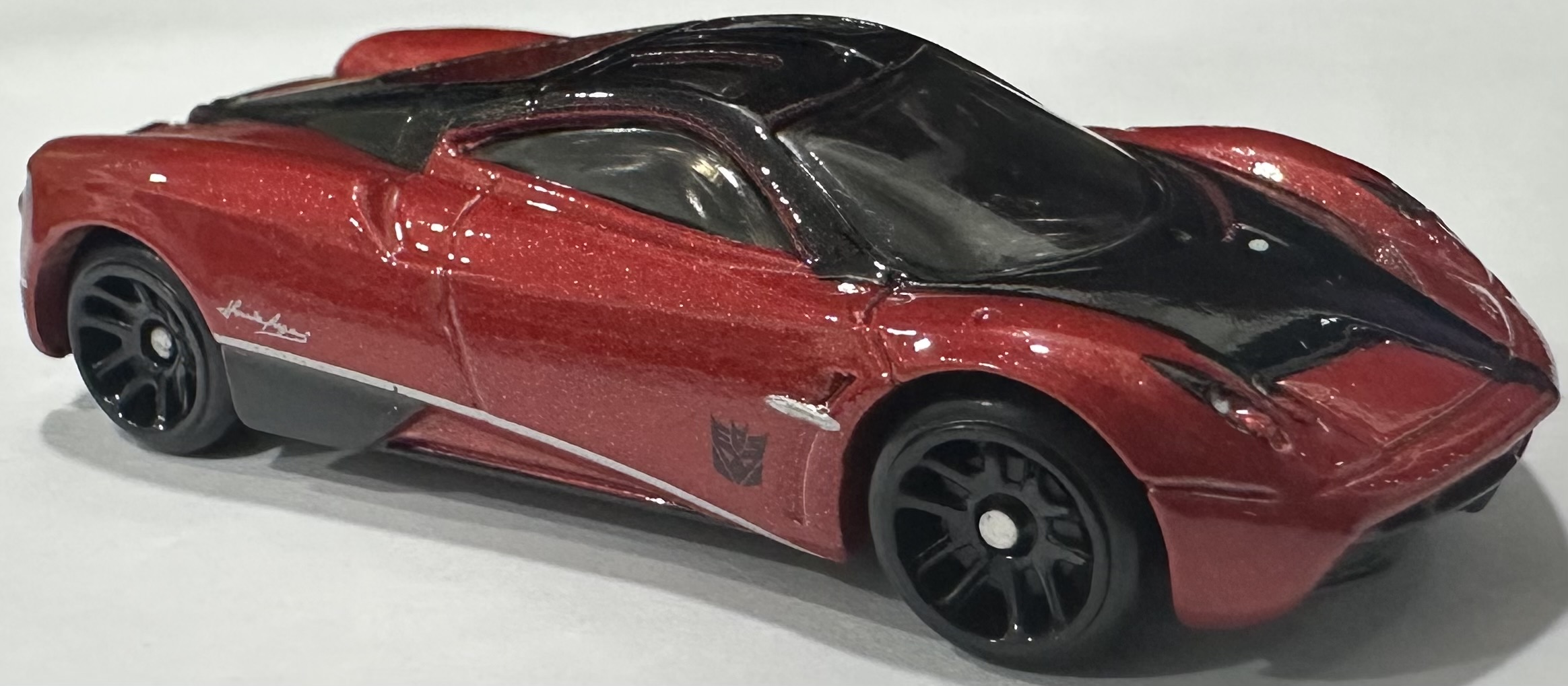 Metalflake Rosso Dubai | Detailed headlights and taillights, black accents, white highlights, Decepticons logo on door, "Horacio Pagani" on engine cover | Black / Plastic |