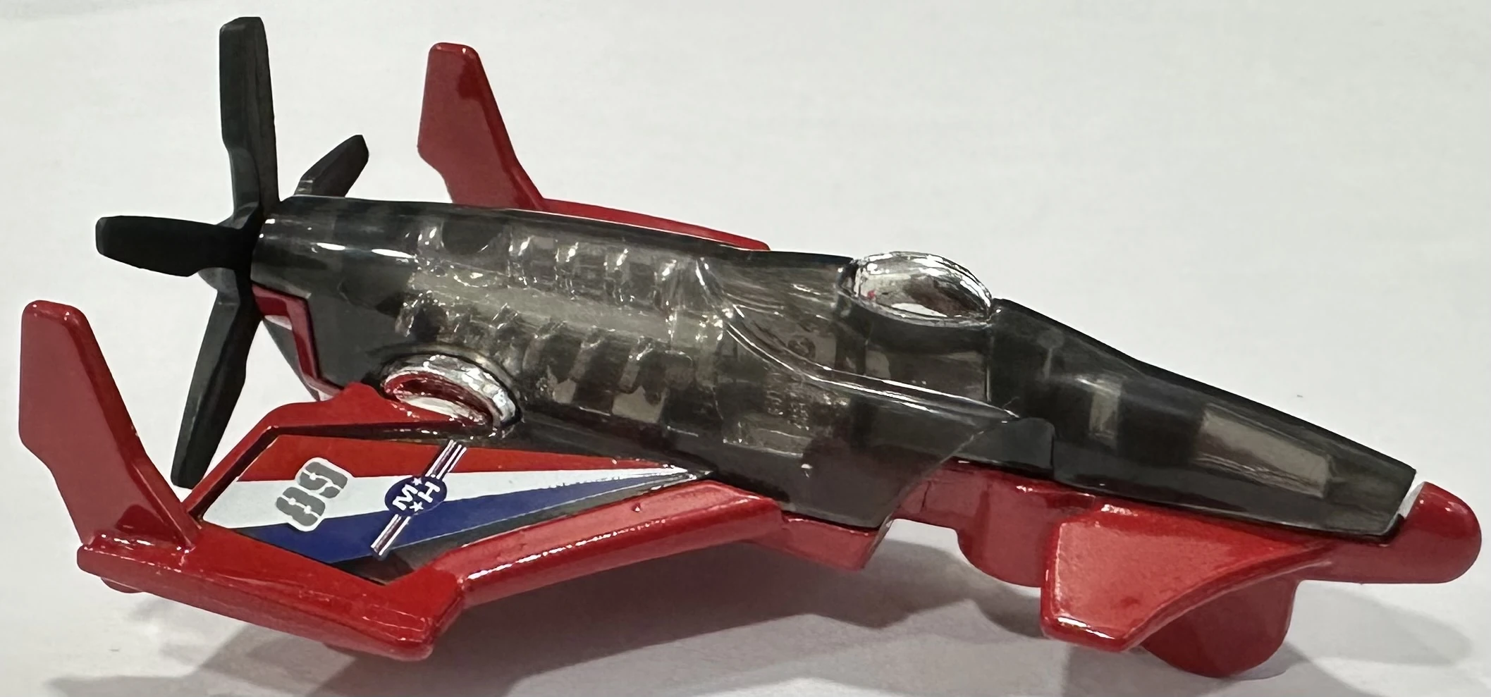 Specialty: With a 5-bladed prop, dual rudder for high performance and bubble cockpit canopy for high visibility, this sleek experimental was made for top secret missions, Hot Wheels style!