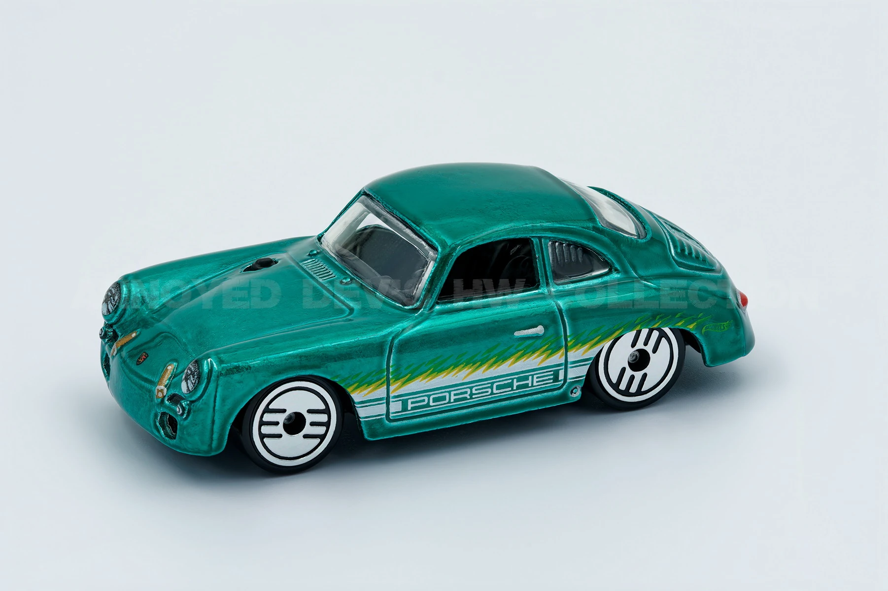 Spectraflame green | Detailed headlights and taillights, afterburner flame tampos, white accent striping, Porsche wordmark on doors | Black / Plastic |