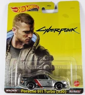 The initial livery of the casting specifically depicts a modified 1977 Porsche 911 Turbo featured in the video game Cyberpunk 2077. In-game, it is driven by Johnny Silverhand (portrayed by Keanu Reeves) and is the only real-life automobile in the game. The base of the casting reads Porsche 930.
