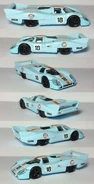 The first release of the Hot Wheels 917 LH is a replica of the car #18 driven by Pedro Rodriguez and Jackie Oliver (Chassis: 917-043) at the 1971 24 Hours of Le Mans, despite having the fastest qualifying time and setting a new lap record, they did not complete the race. The car still exists and has been restored to its livery from the previous year (1970), it is on display at the Simeone Foundation Auto Museum.