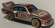 A former Corgi casting from the 1980s, reborn in the 1990s as a Hot Wheels after Mattel's 1989 purchase of the Corgi brand. The "Porsche 935" is a scale model of the 1976-1977 Porsche 935 race car, which competed in the Group 5 Special Production Cars class in the late 1970s at Le Man and Daytona races. The early Porsche 935 was later replaced by the now-iconic Porsche 935/78 in 1978.