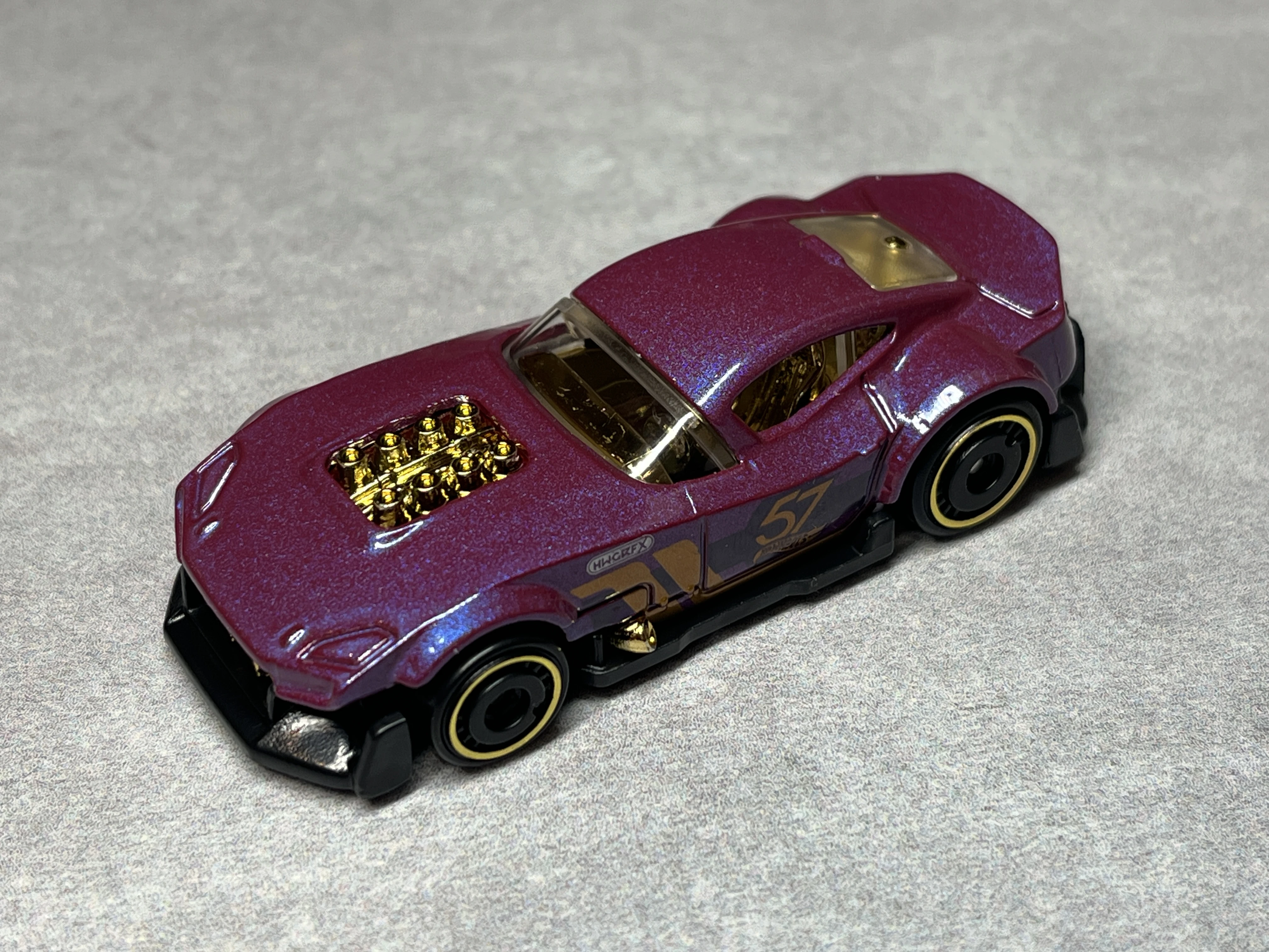| 5/6 | JDM24 | Muscle and Blown | Metalflake plum | Hot Wheels logo, "57", gold stripes on sides | AeroDisc | Base code(s): T34 |