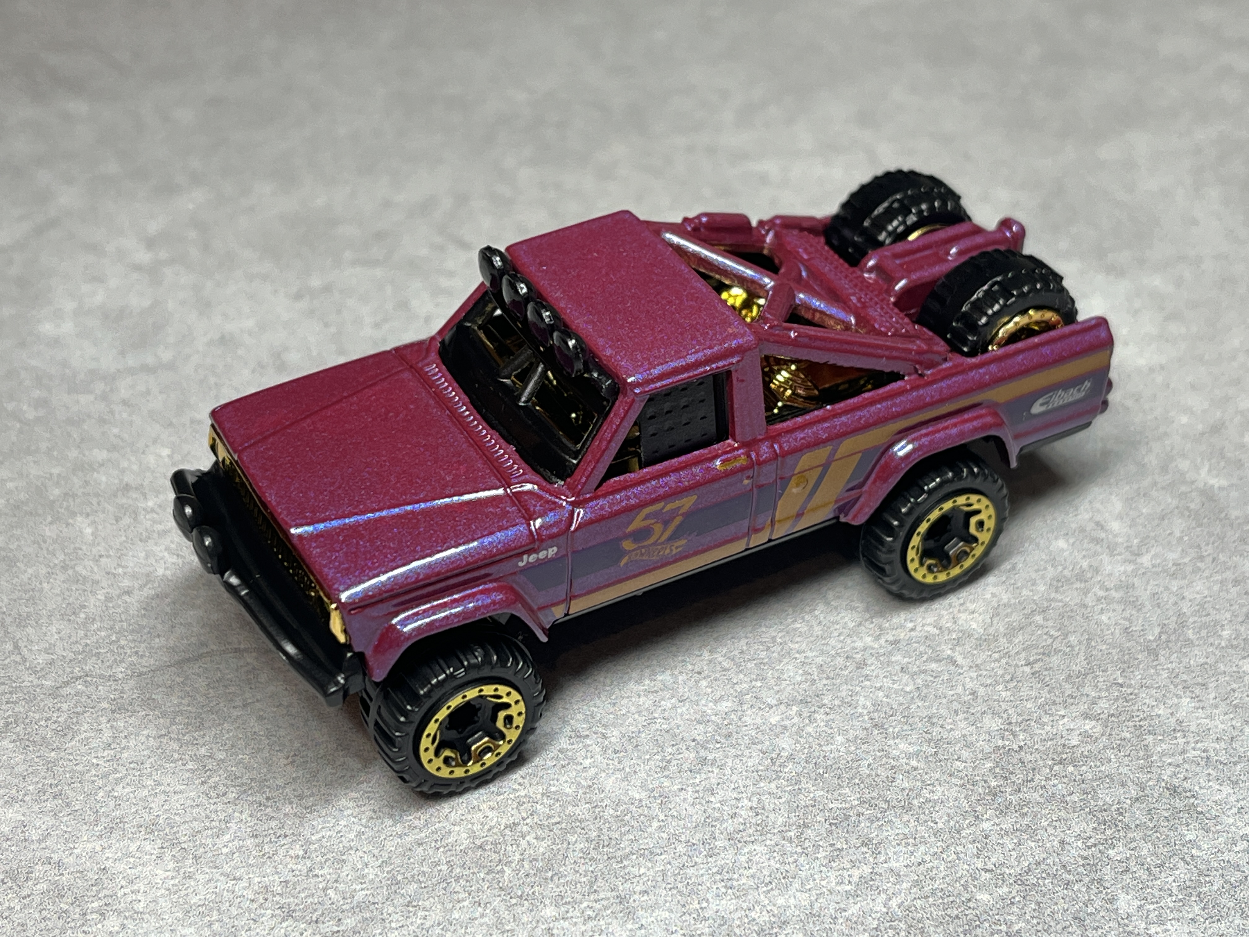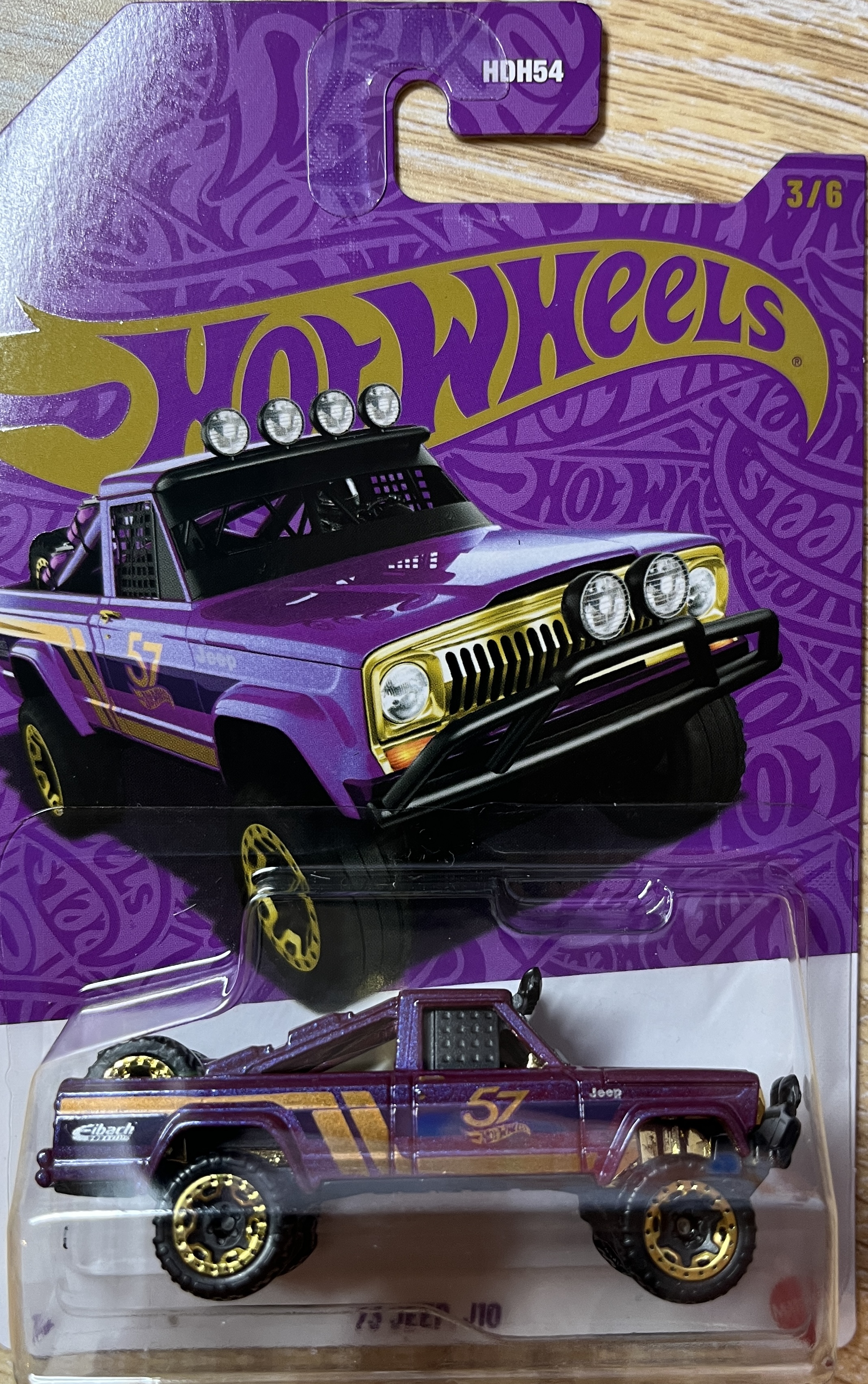 | 3/6 | JDM22 | '73 Jeep J10 | Metalflake plum | Hot Wheels logo, "57", gold stripes on sides | BLOR | Base code(s): T34, T44 |