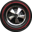 RLDD | Redline/Red Stripe Deep Dish | 1968 | The "wheel" is inset a few millimeters from the "tire". Used on a few Hong Kong cars in 1968, came in small and medium sizes; attached with a white or pink bushing |