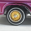 RRLACE or Real Rider Lace is a line of Hot Wheels Wheel Types introduced in 2021. The wheel sports chrome gold VUM spokes with a silver center cap; they are small and very thin. The rubber tires match the size and are treaded. The wheel is based off of popular wheels from the particular lowrider subset which focus on adding hydraulic functions to make the car raise, lower, pose and bounce.
