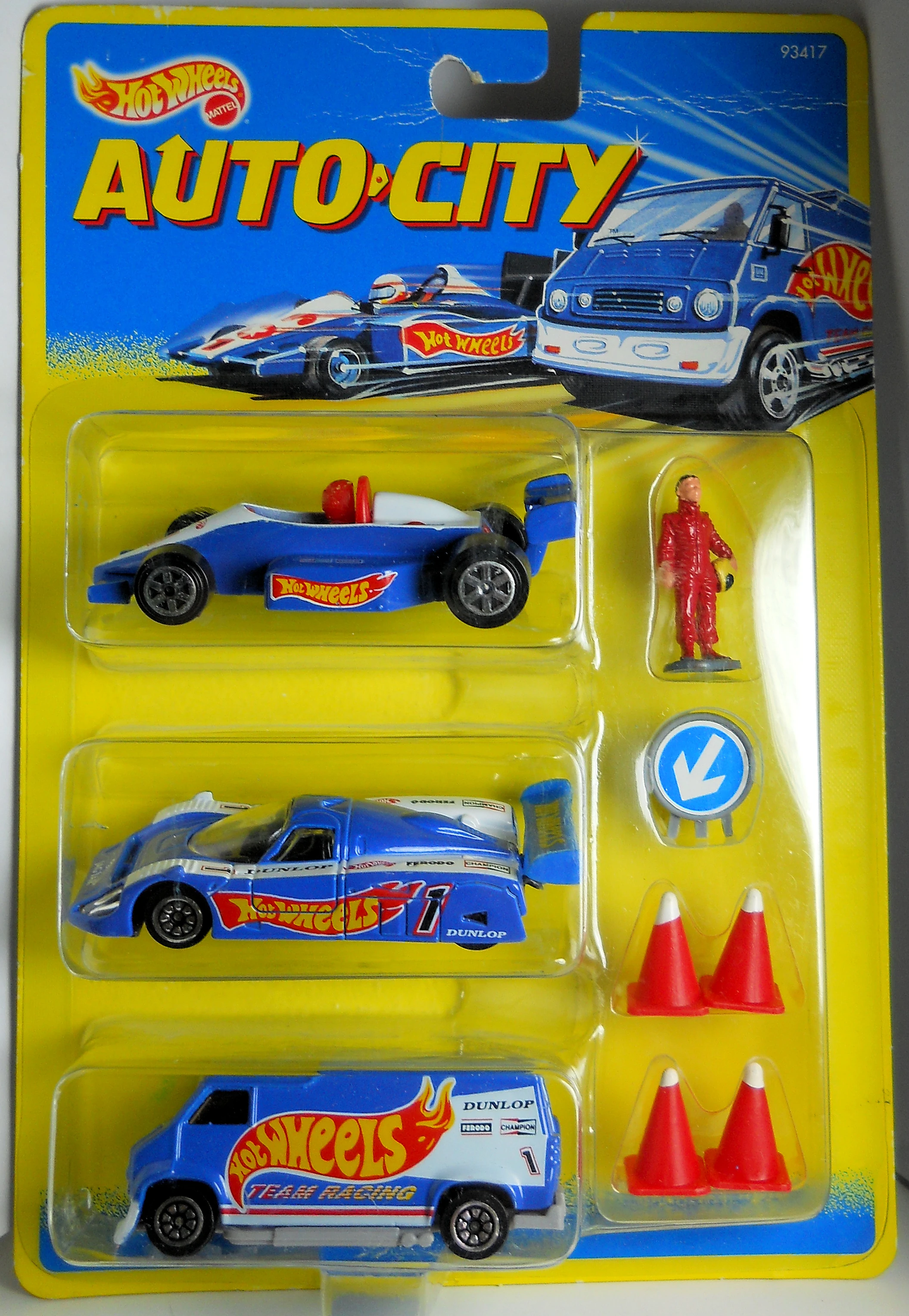 The Race Team 3-Pack made its first debut under the Auto-City series in 1995. All castings and track accessories released in this 3-Pack were designed by Corgi Toys.