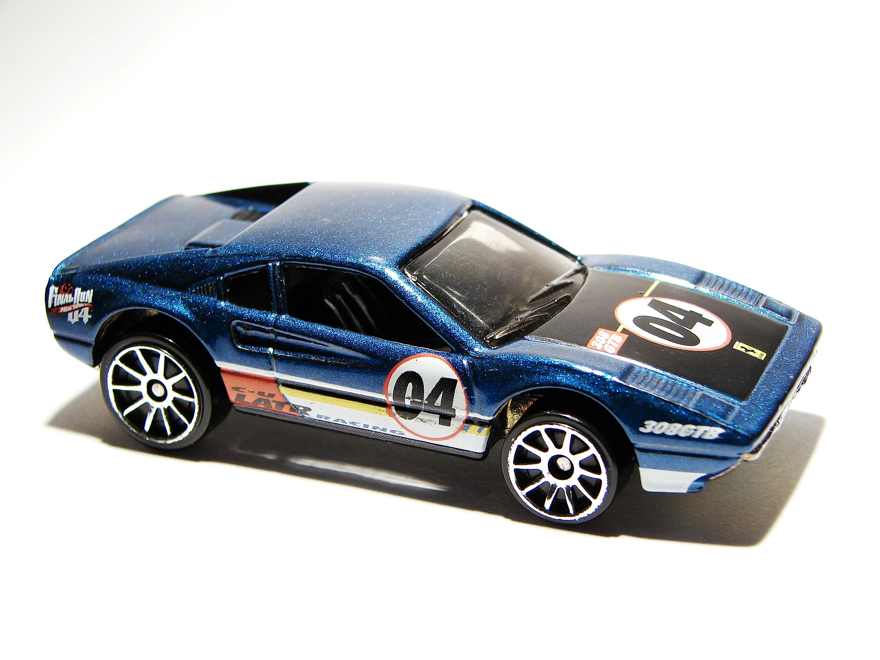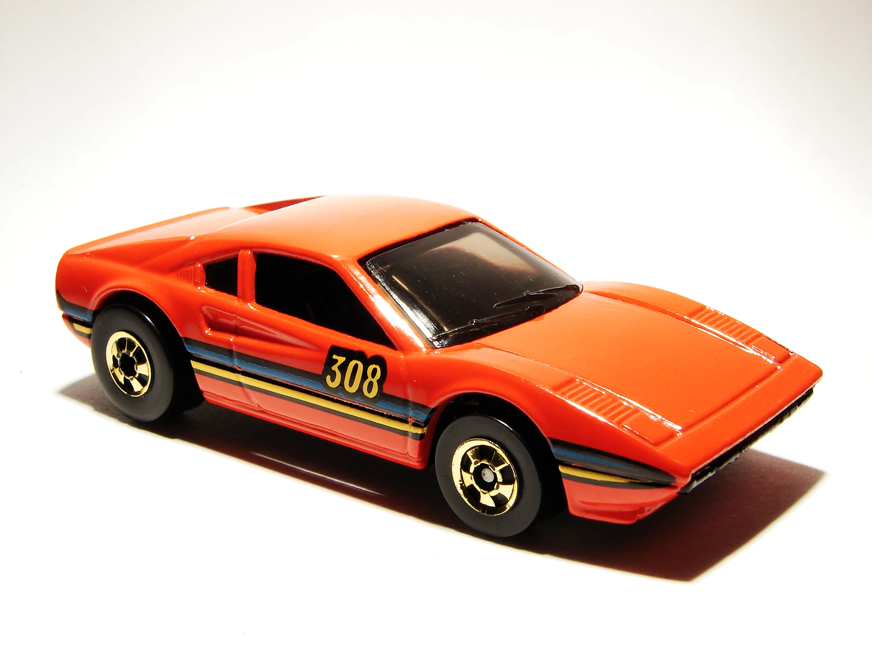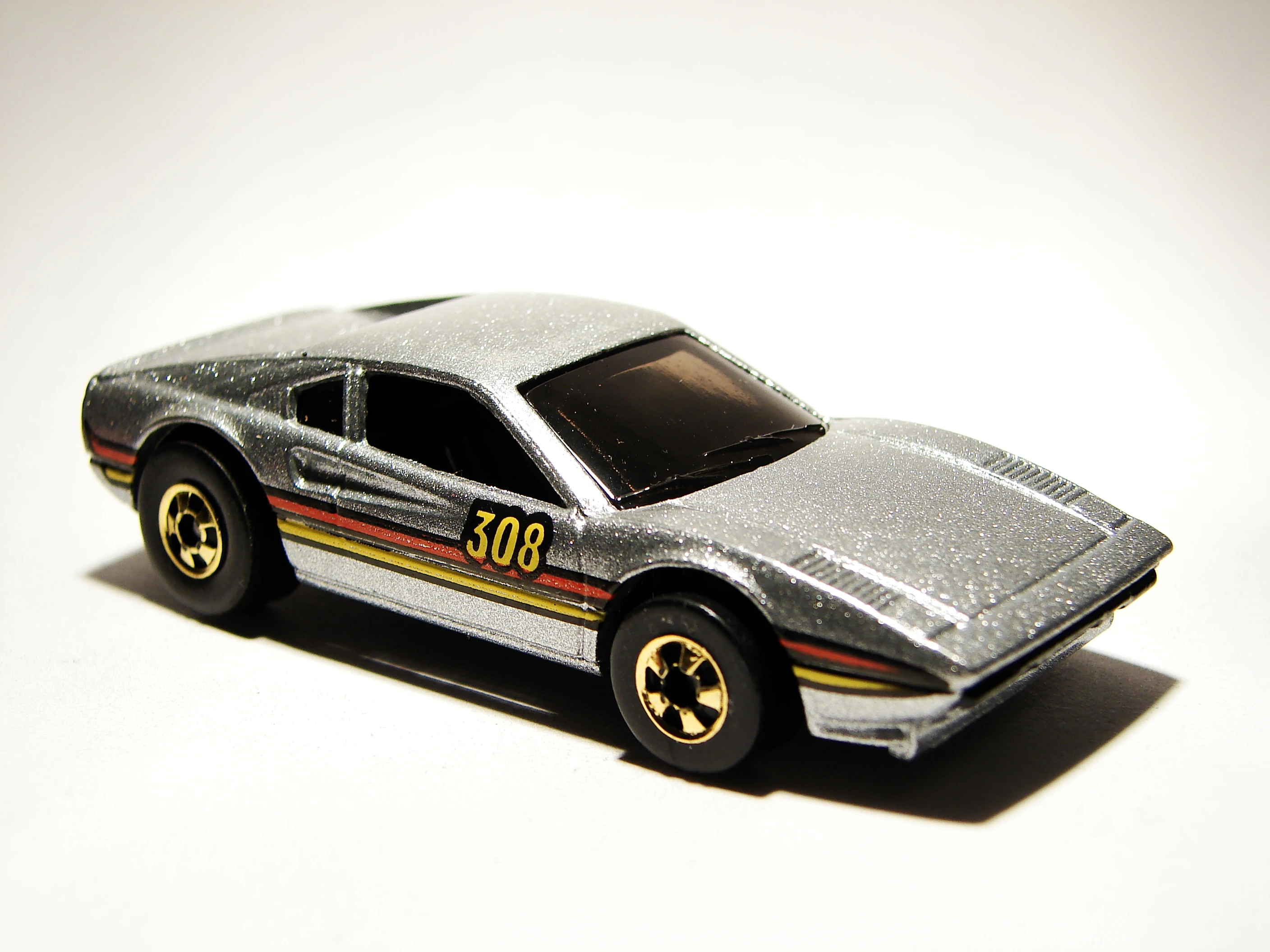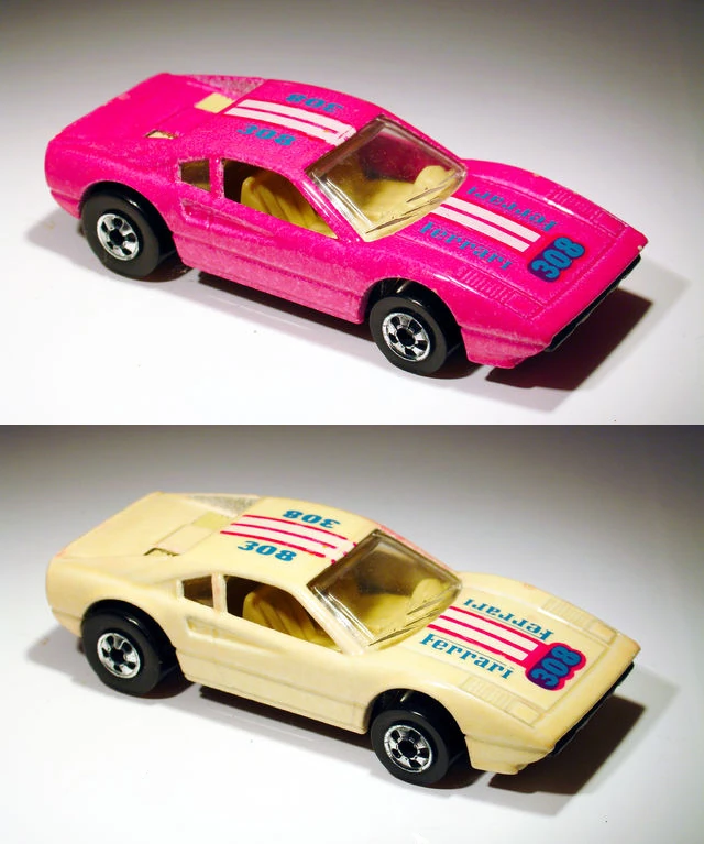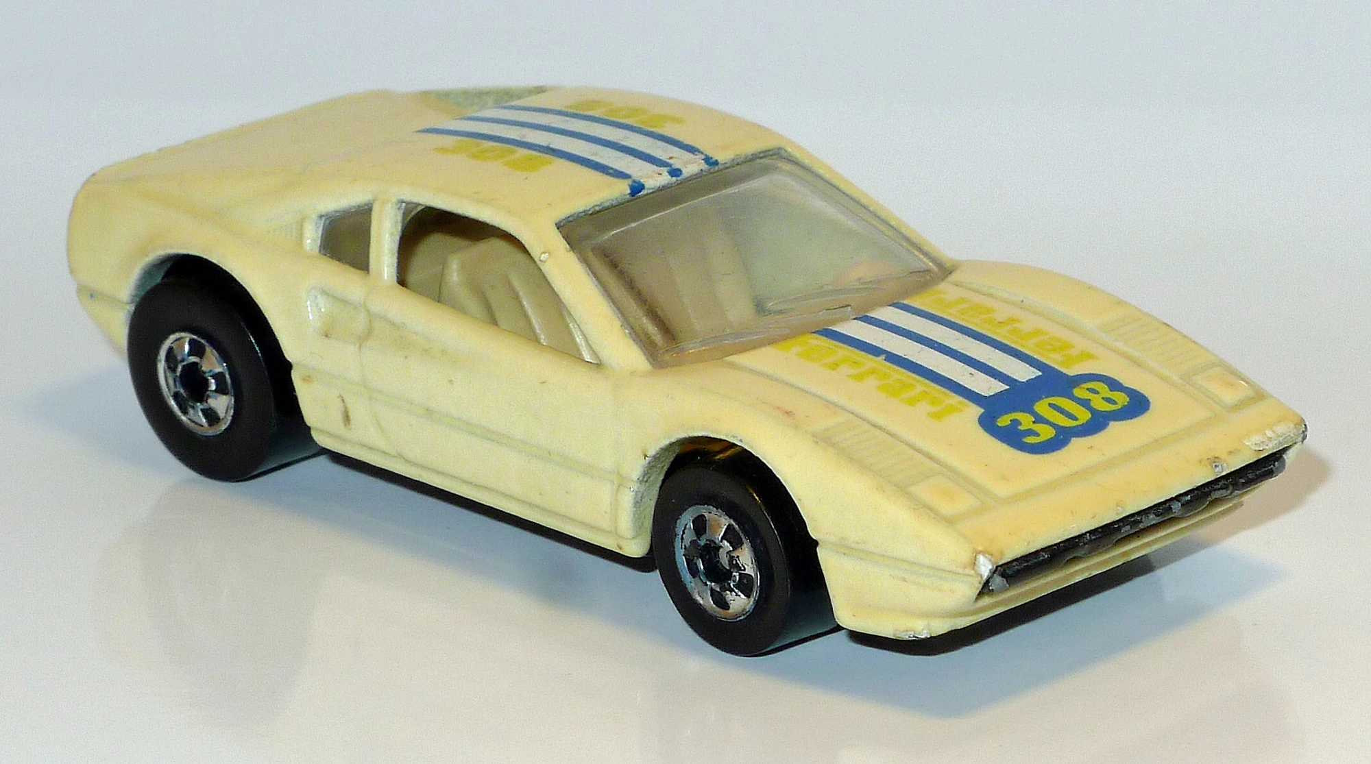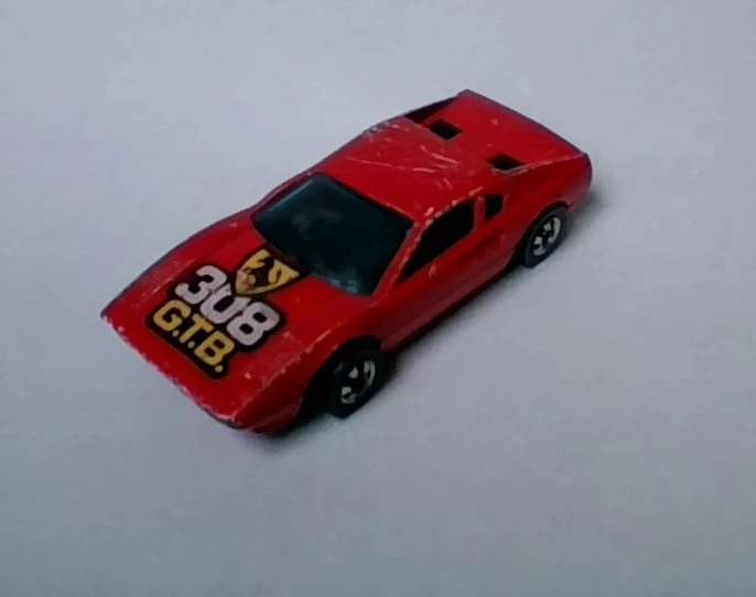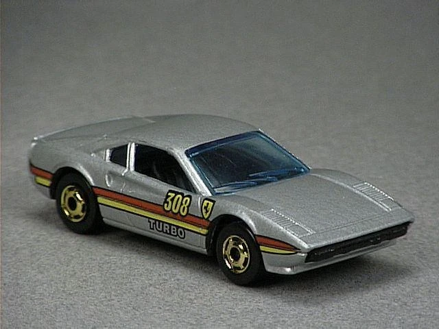 This casting has been variously named the Race Bait 308 and Racebait 308; in later years this casting was named the Ferrari 308 or Ferrari 308 GTB. This casting originally had a plastic base before it was changed to metal in 1982. The casting was modified for use in the Power Command Racers series in 1990, now with a different plastic body, clockwork motor and a large wing. Said Power Command casting was later modified for use in the regular lineup, although this was short-lived.