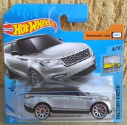 Metalflake Silver | Detailed headlights, taillights, grille & side trim, "RANGE ROVER" on front & rear, Range Rover & Velar logos on rear, Hot Wheels logo on rear license plate | Black / Plastic |