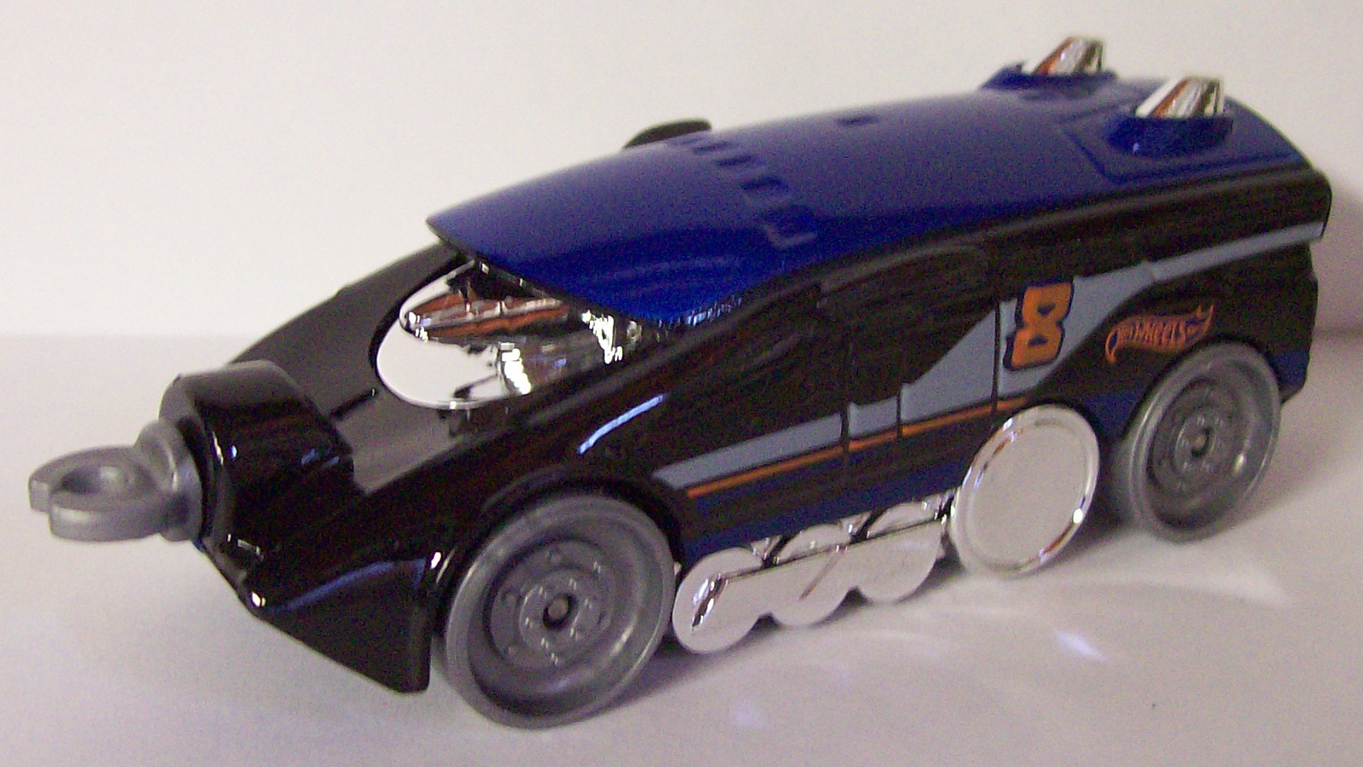 | V0139 | Rail Rocket | Black | Blue Roof, Orange & gray stripes, "Rapid Transit", "8" | Blue | Chrome | Gray | ![]()