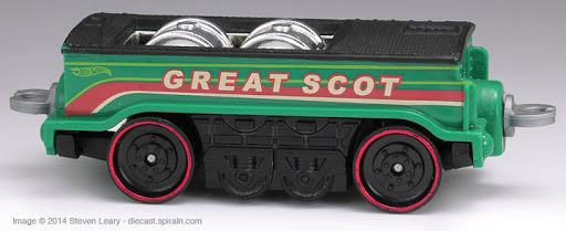 | W4418 | Great Scot | Green | HW logo, "Great Scot" text, Red & White Stripe on car, "1472" text, Red & White Stripe on engine. | Black | Chrome | Black w/ red chrome rim | |