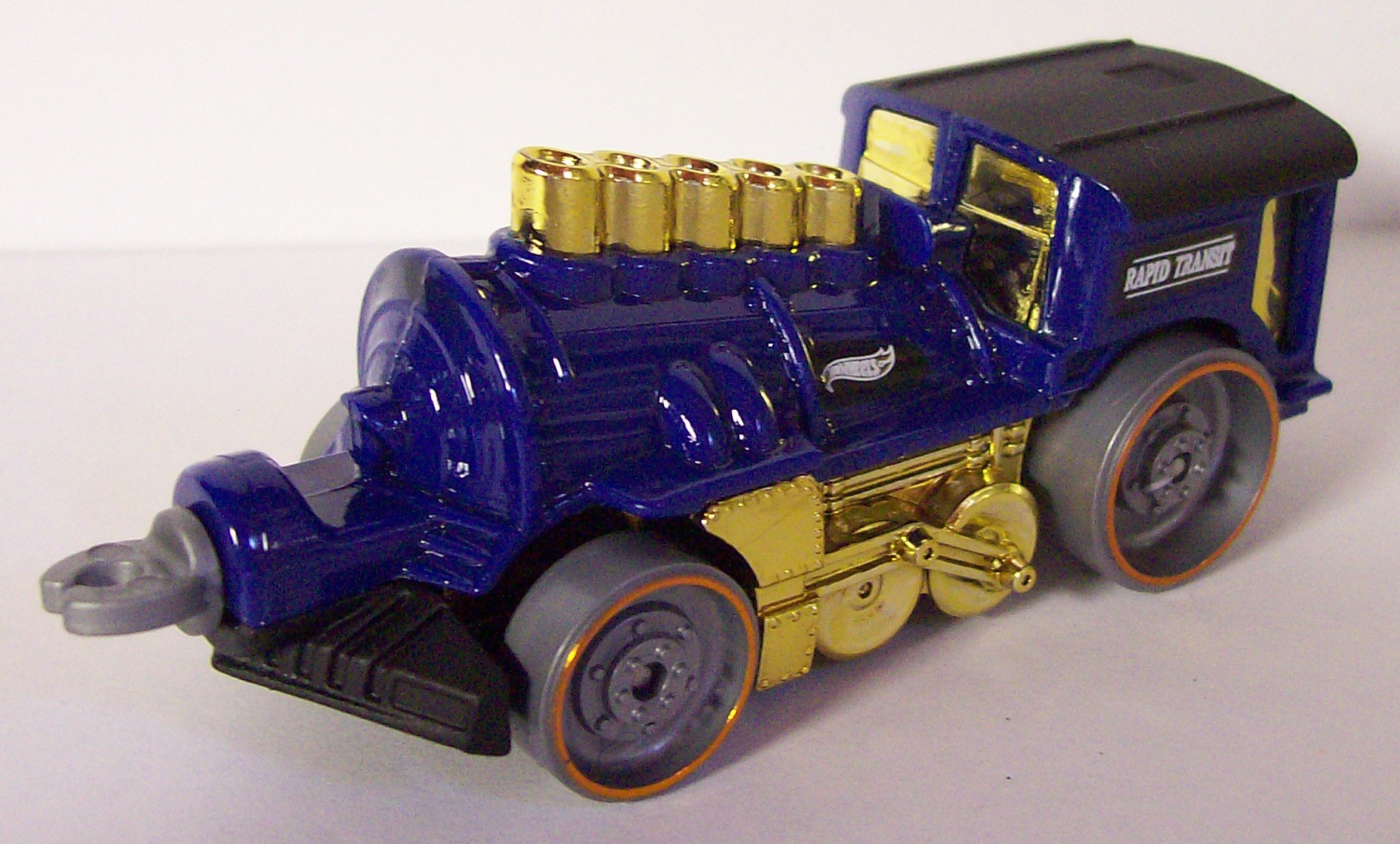 | W4422 | Steamin' Demon | Blue | Black Roof, "Rapid Transit" and HW logo in black & white on engine, white striping on car | Black | Gold Chrome | Gray w/ copper rim | ![]()