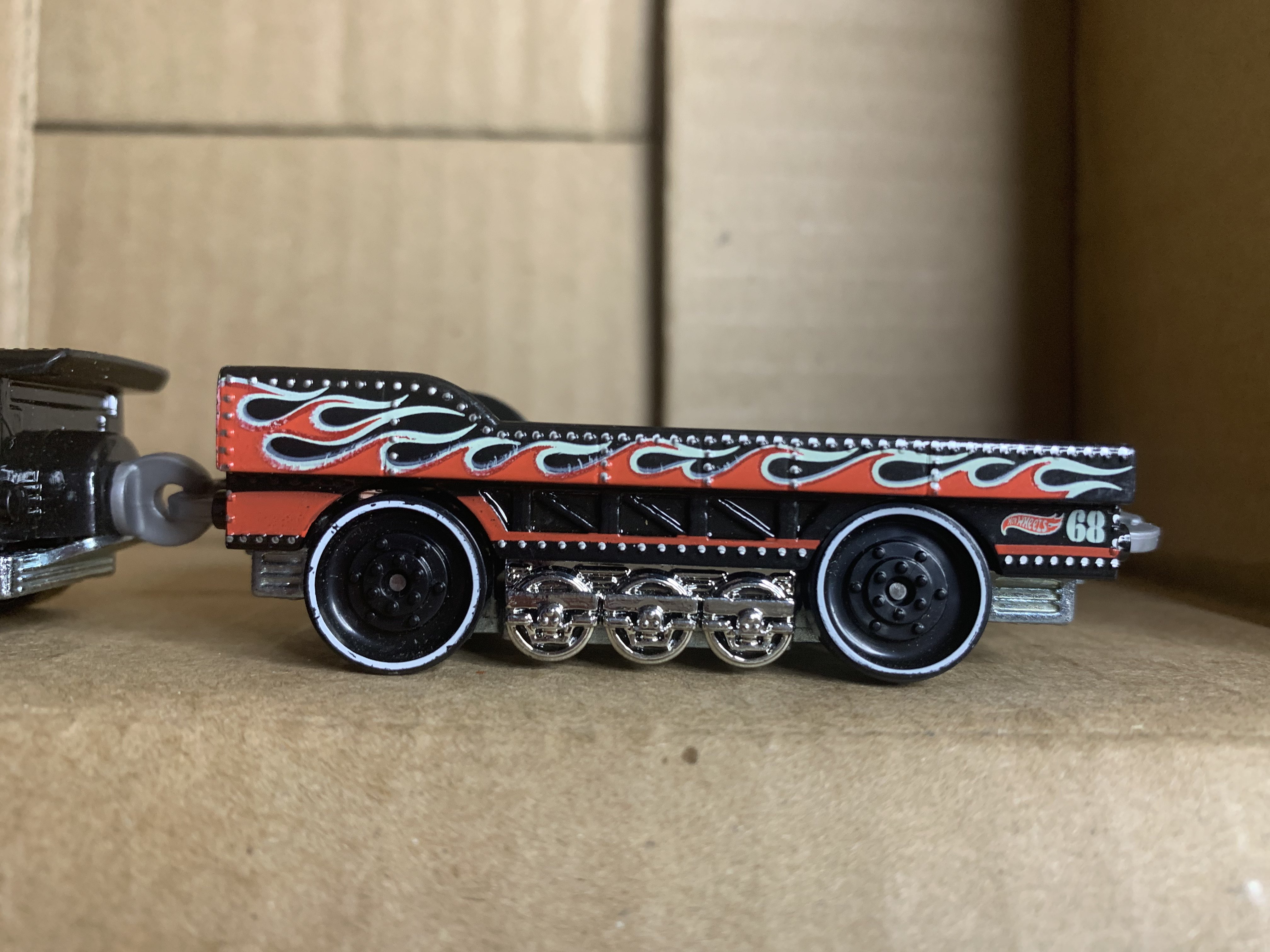 | W4425 | Super Steamliner | Black & Red | HW logos, Red & White Flames, "68" on car and engine | Unpainted | Chrome | Black w/ White Outline rim | ![]()