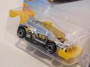 Rising Heat is a highly futuristic hill climb race car. The casting's interior features a driver inside. The spoiler is adjustable ("chin-up/down") for use on Hot Wheels tracks.