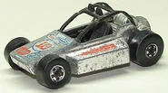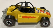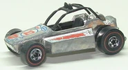 It hit the Line-up in 1976. Desert racing was hitting racing in a big way. Mattel introduced a radical little single seater desert race machine. Air-cooled Boxer engine in the rear, as was the norm then. Light and cheap. This casting features plastic interior and roll cage.