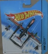 SB94 Drone is an original design that first debuted under the Sky Busters series in 2013. It depicts a heavily modified Israel Aerospace Industries Heron. This casting was only available under Hot Wheels internationally; it was released under Matchbox in the United States.