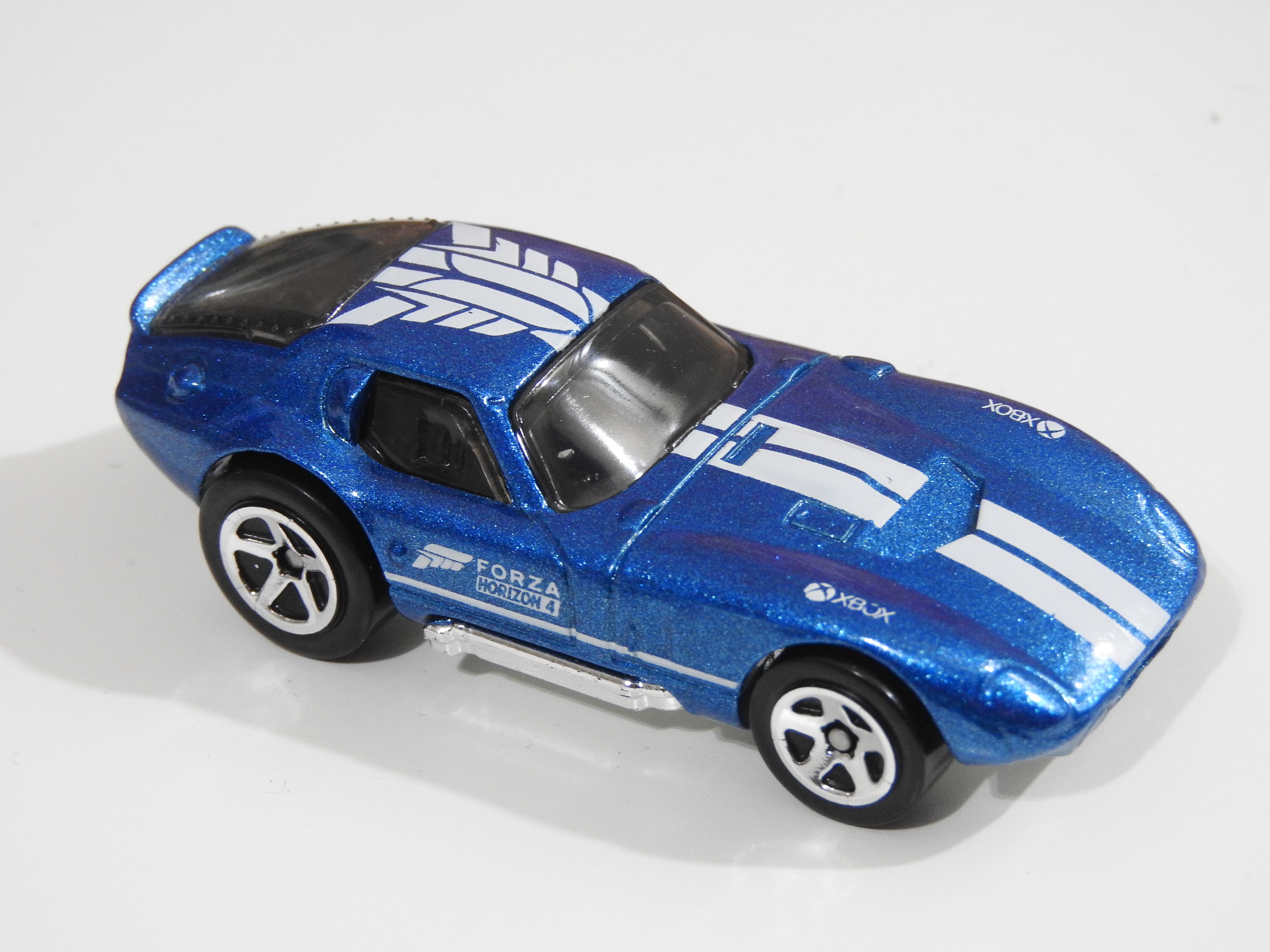 Metalflake Blue | Forza Logo, 'FORZA HORIZON 4' on sides. White Stripes run along the top. 'XBOX' on hood | Chrome / Plastic |