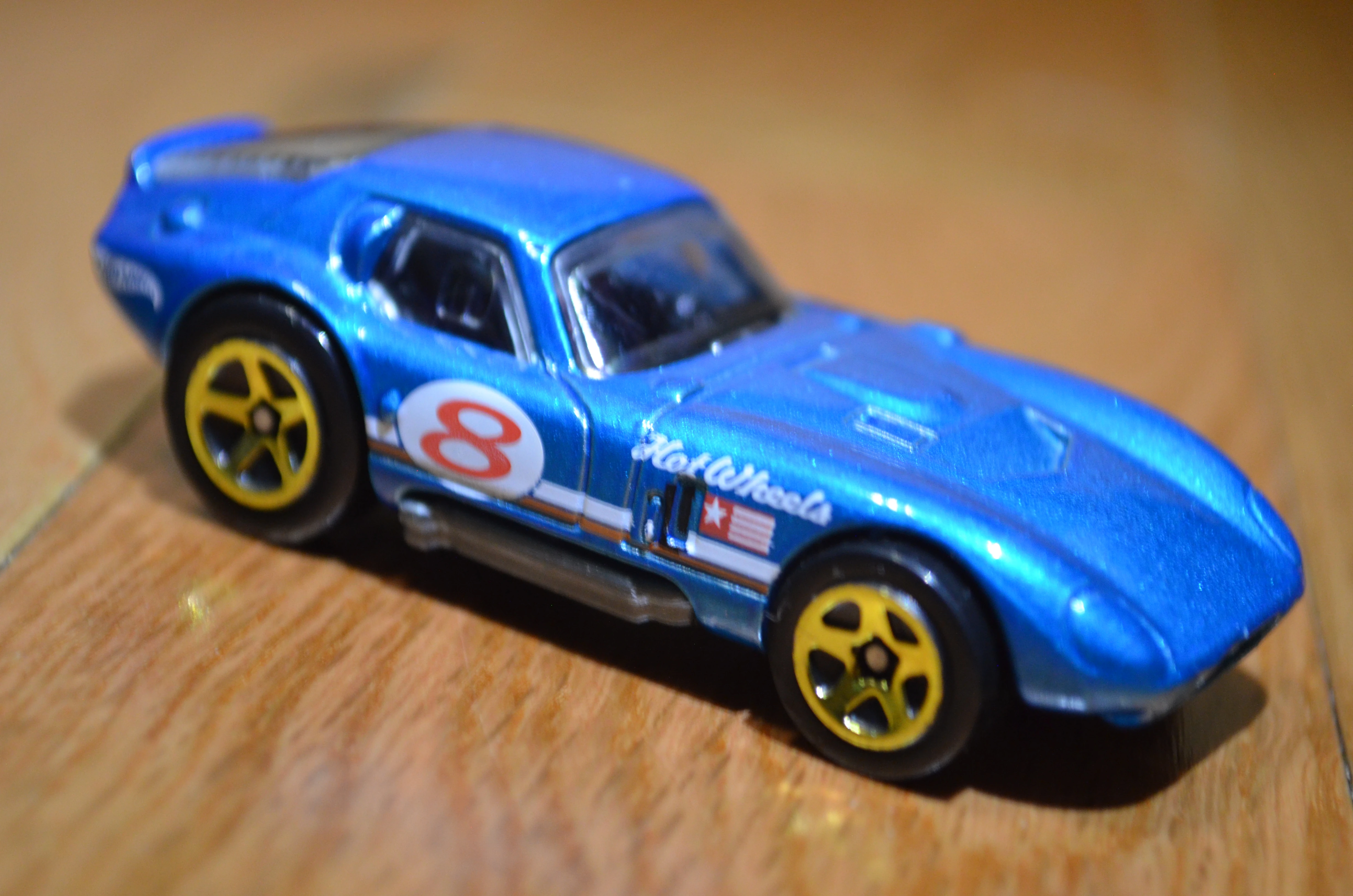 | 2016 | Multipack Exclusive | Metalflake Blue | White & Brown stripes on sides. White circle with Red "8" on sides. White "Hot Wheels" on sides. Red & White flag on sides. White Hot Wheels logo on rear sides. | Gray / Plastic |