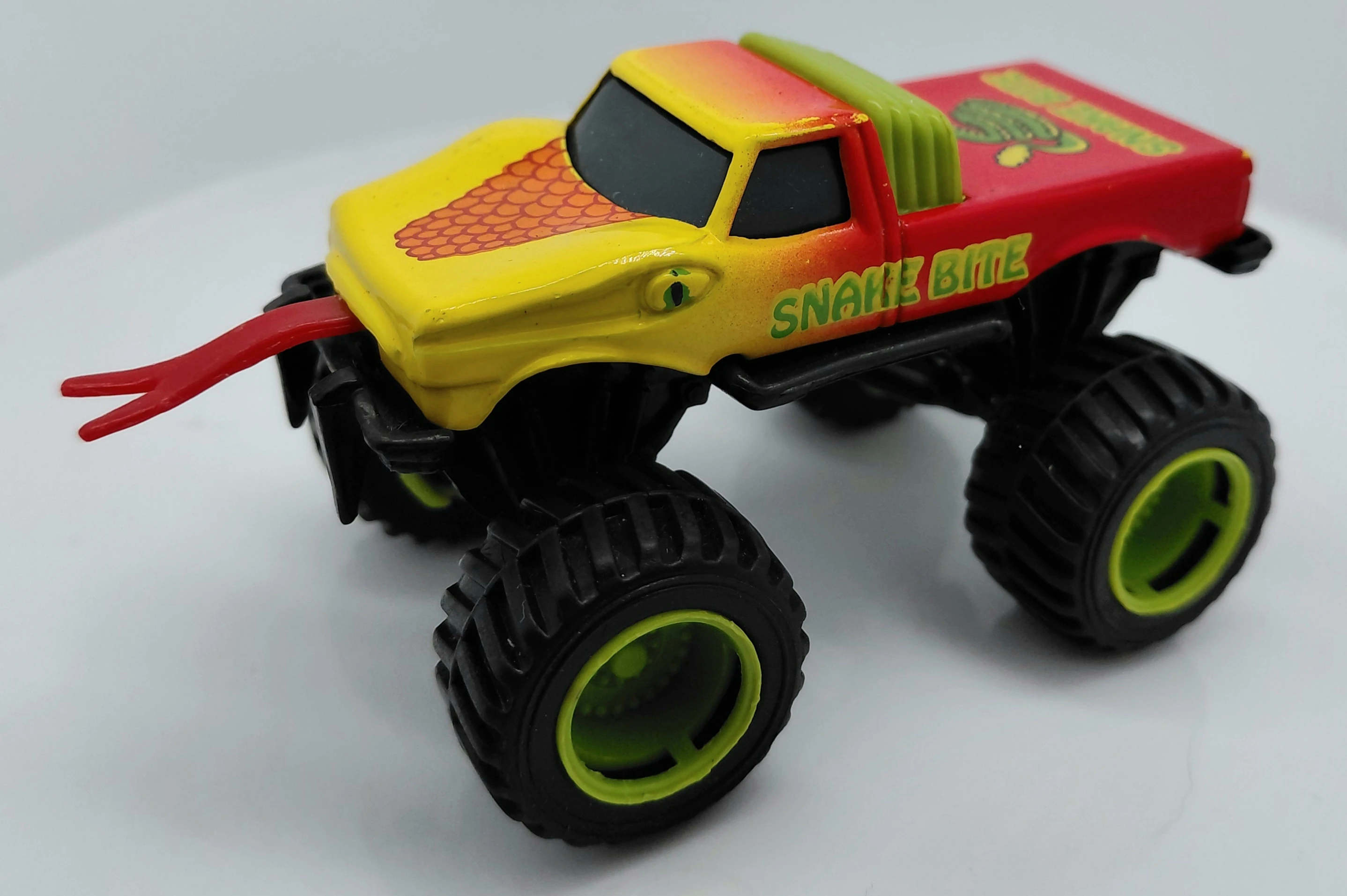 | 1992 | Bigfoot Champions VHS pack | Yellow & Red | Orange scales on hood, Green "SNAKE BITE" on sides and back, snake on back | Black / Plastic |