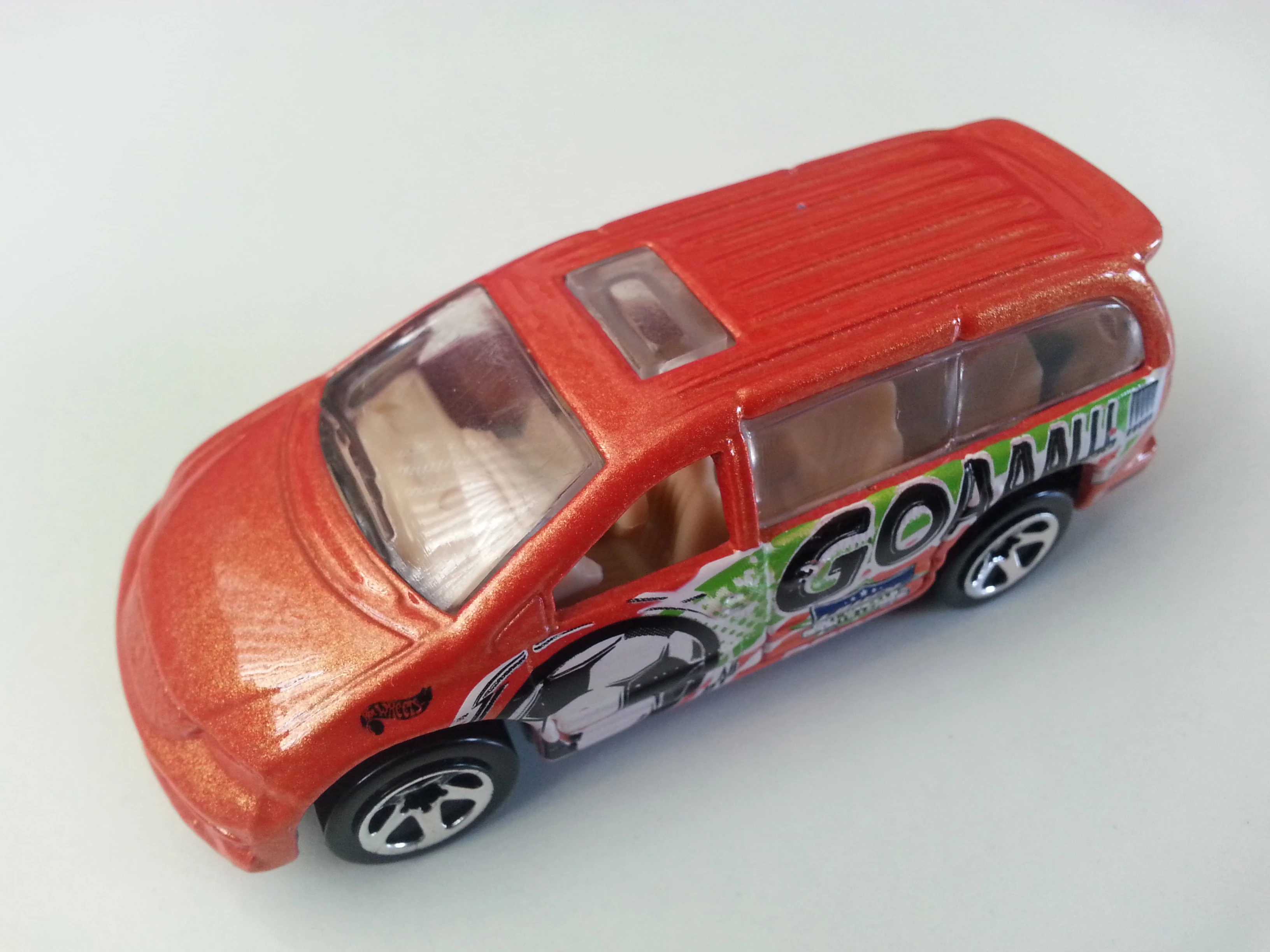 | Dodge Caravan | Metalflake Orange | Black, Green, White GOAAALL!!!!! & soccer ball | Grey / Plastic |