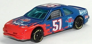 Fun Fact: The first variations from the Ford 5-Pack are similar to the Bill Elliott's #11 Budweiser car which appeared from '92 to '94. Of course due to the fact that Hot Wheels does not want alcohol sponsors on their toy for little kids, the Budweiser sponsor was replaced with the "Ford" logo. This is not the only time Hot Wheels had to replace sponsors. Ricky Craven's #50 (and #25) Budwiser Chevrolet Monte Carlo Stocker had its sponsors replaced with "Hendrick Motorsports". Sterling Marlin's #40 Coor's Light '01 Dodge Intrepid Stock Car had its sponsors replaced with "Sterling Marlin". Rusty Wallace's #2 Miller Beer Pontiac Stocker has its sponsors replaced with "Pontiac". With all these changes it's a surprise that Hot Wheels kept Mark Martin's #6 Viagra Taurus Stocker as is.