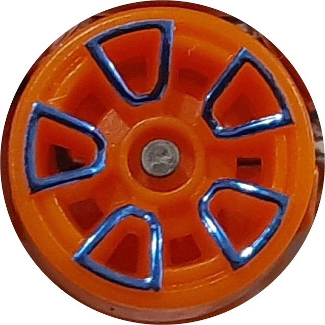 TRAP5 or Trapezoid 5-Spoke is a line of Hot Wheels Wheel Types. This is the same type of wheel as the FTE2 but lacks a nickel-plated axle; this wheel is also available in numerous different rim colors. These wheel also exhibits the same problems as the FTE2; due to its construction its spokes can scrape against the sidewalls, slowing the car down and at high speeds causing crashes.