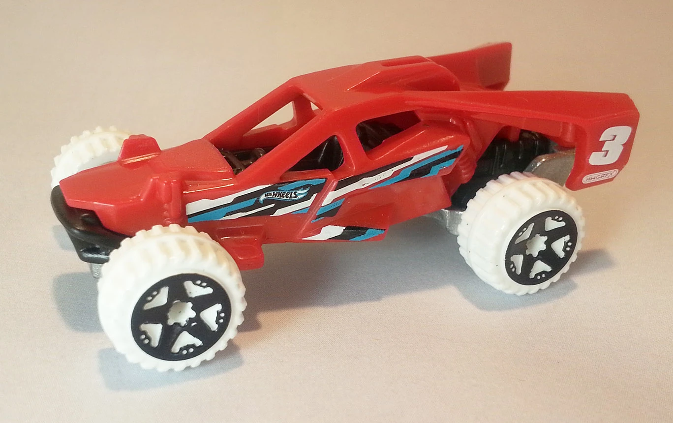 | 099/250 | 2015 | HW Off‑Road: Hot Wheels Test Facility | Light Blue | Black, Orange, Yellow & White graphics, Off-Road like graphics, Hot Wheels logo on side, black flames on hood | Orange / Plastic |