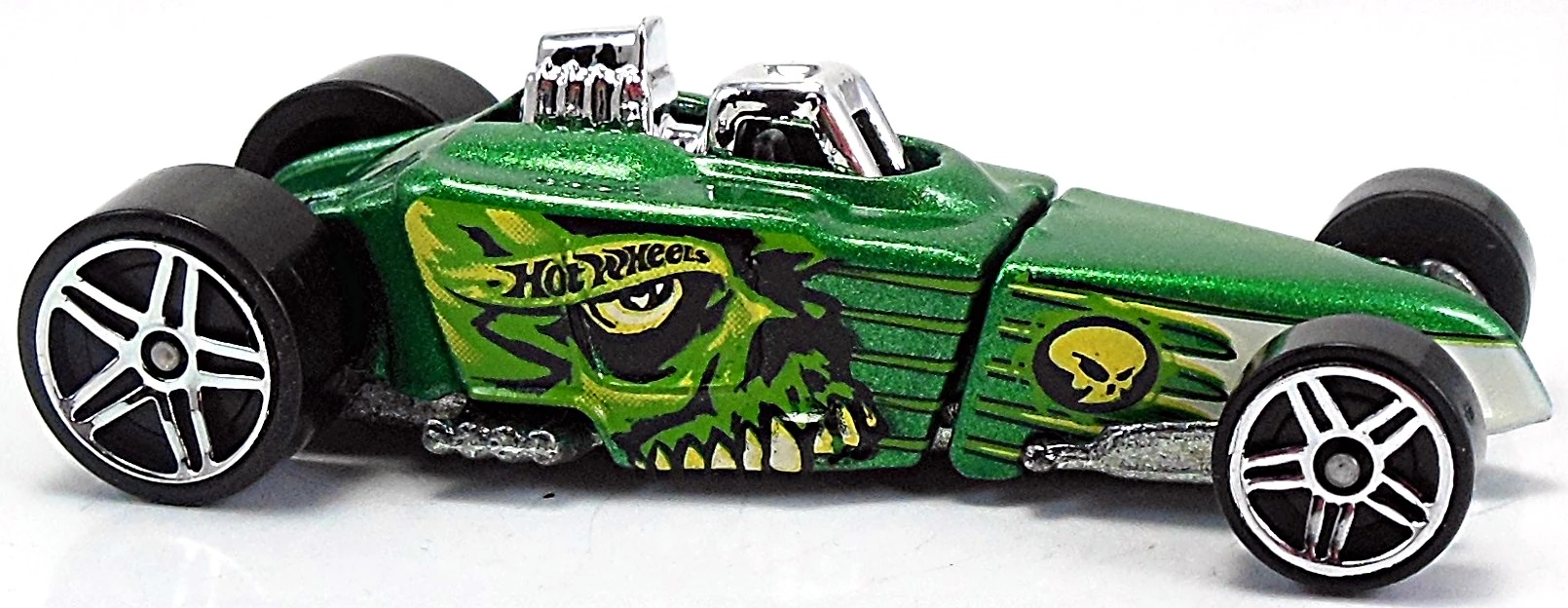 Metallic Green | White Scallops, Light Green & Yellow Skull with Hot Wheels Logo as Eyebrow Ridge | Unpainted / Metal |