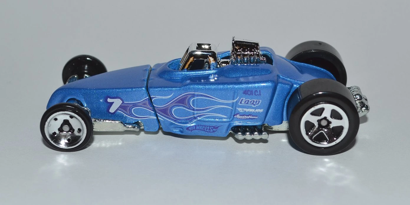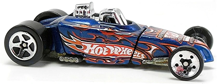 Metallic Blue | Red, Yellow & White Flames on Sides and Top, Hot Wheels Logo on side | Unpainted / Metal |