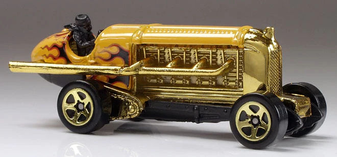 Red | Black and Gold tampos, "Hot Wheels" logo behind driver | Red / Metal |