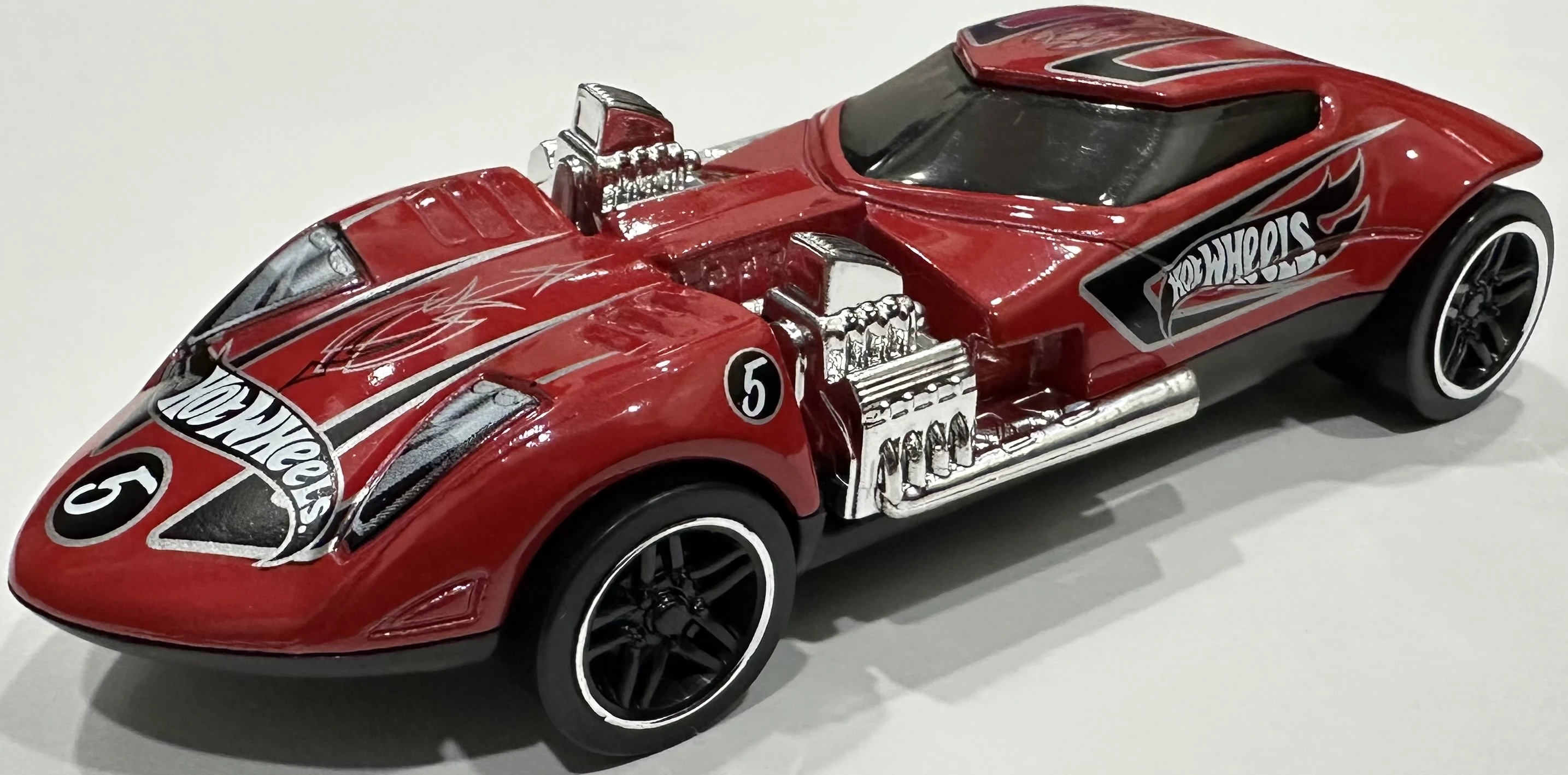 | 2023 | Pull-Back Speeders | Red | Black and silver scallop design, White Hot Wheels logo and "5" | Black / Plastic |