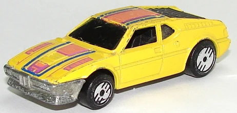 | BMW M1 | 1991 | Yellow | Prange, purple, and blue "TUNED" | Unpainted / Metal |