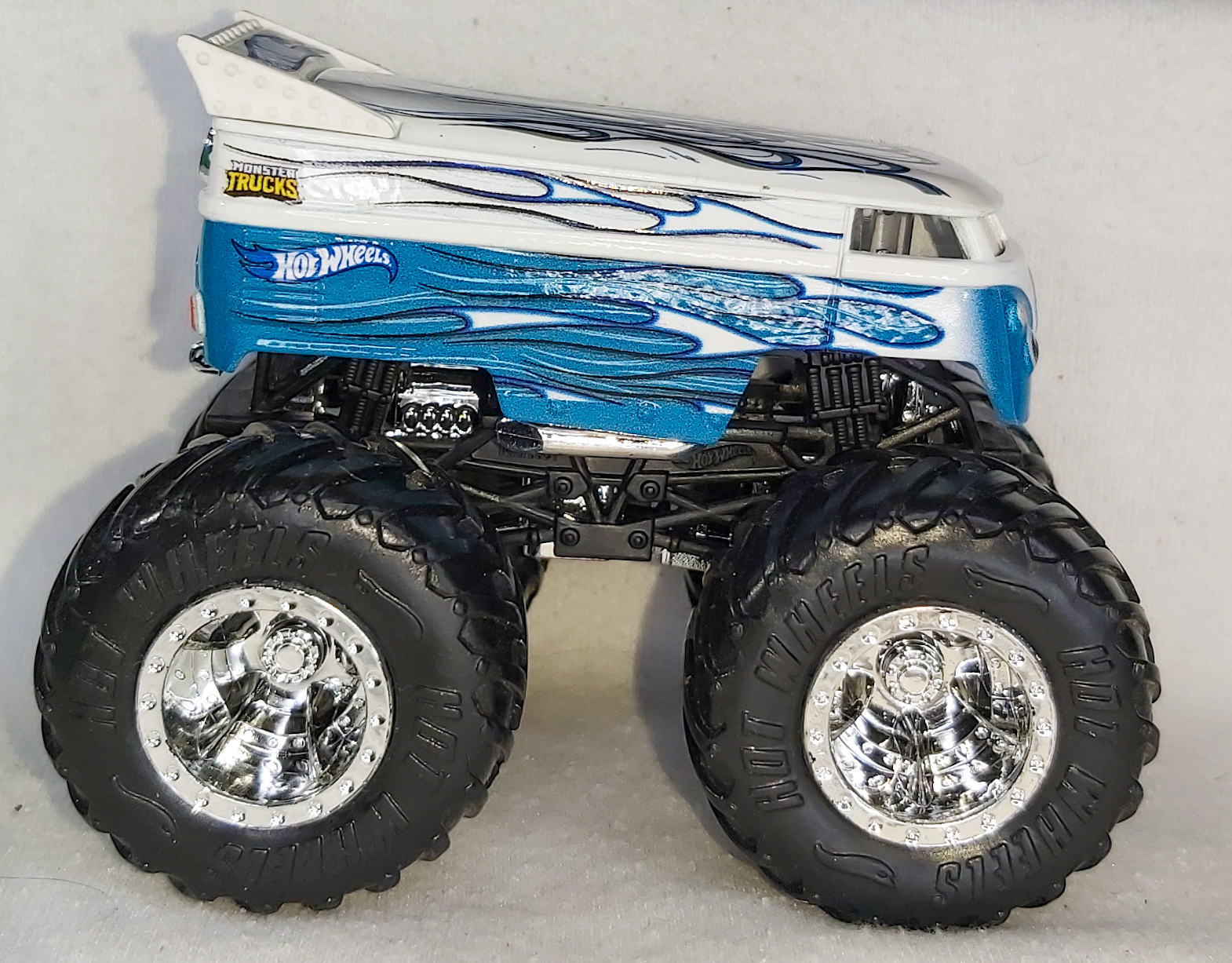 | 2023 | Hot Wheels Monster Trucks Demolition Doubles | Light Blue & White | Light Blue & White flames, HW & MT logos | Black / Plastic |