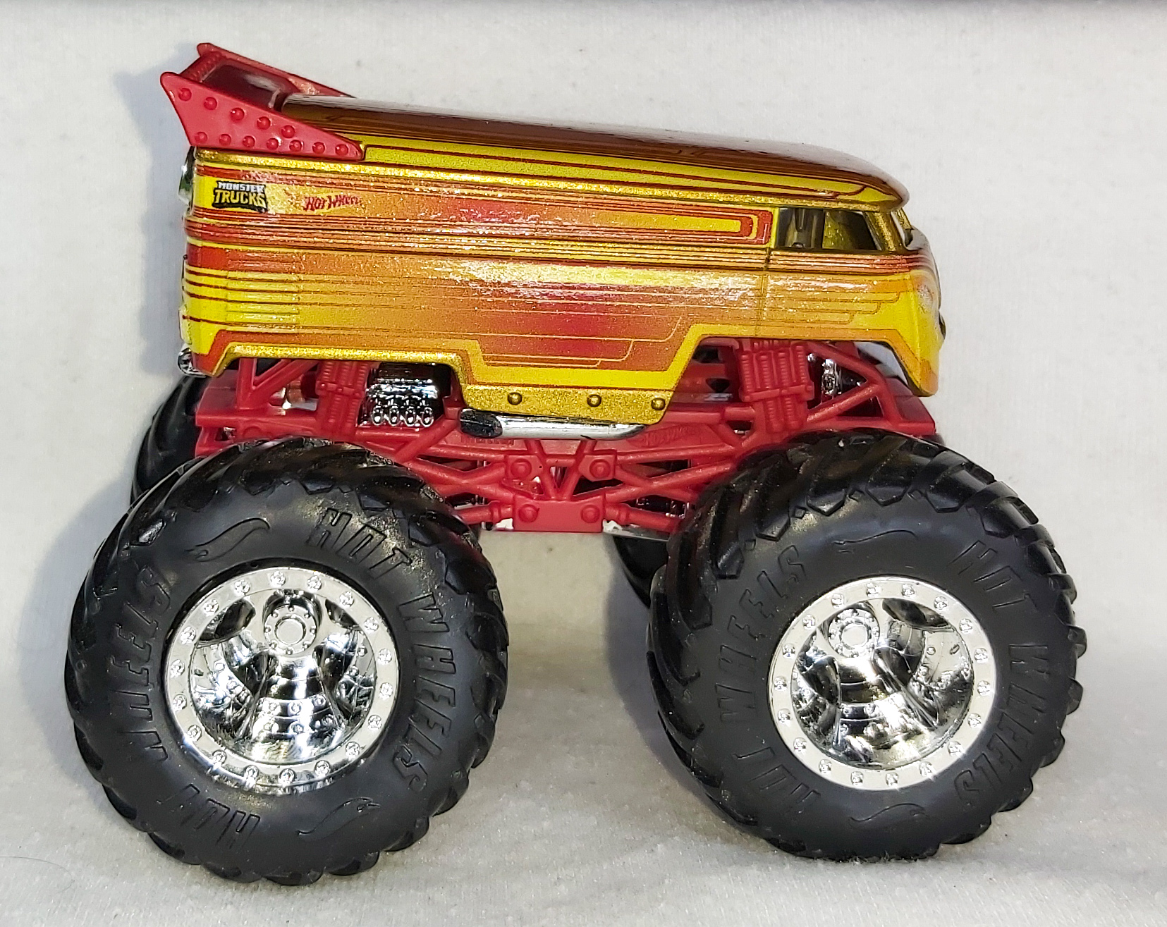 | 2022 | Hot Wheels Monster Trucks: Demolition Doubles | Dark Silver & Orange | Head & taillights, VW & HW logos | Black / Plastic |