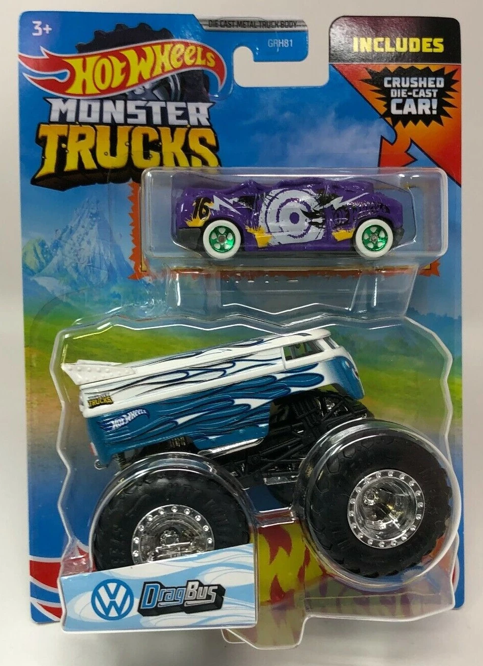 | 2022 | Hot Wheels Monster Trucks + Crushed Die-Cast Car Packs | Light Blue & White | Light Blue & White flames, HW & MT logos | Black / Plastic |