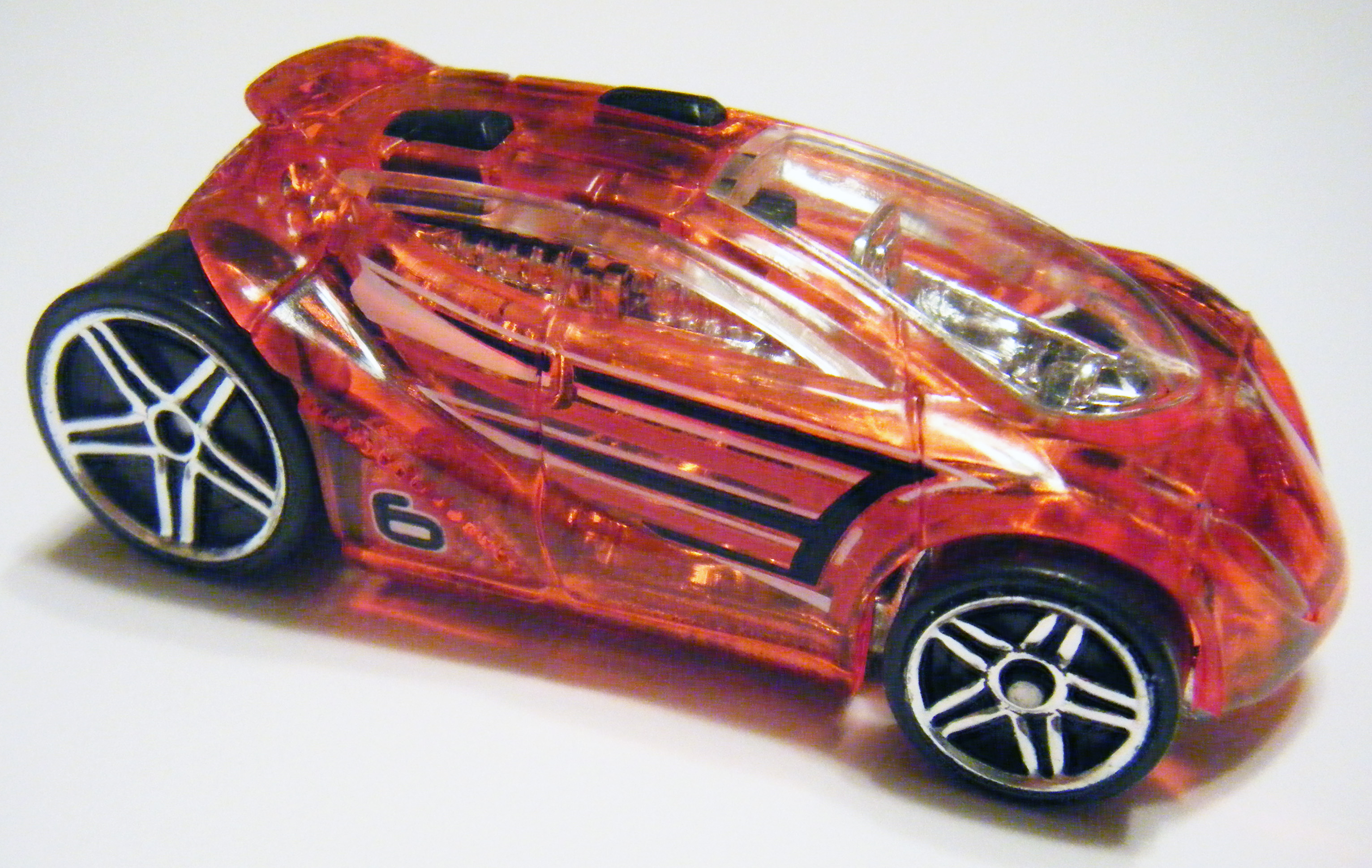 Tinted (Red) | Glow-in-the-dark | Red PR5 | K7654 | Malaysia | appeared in Hot Wheels Spin City: Drive-thru dilemma |