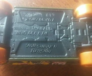 The Hot Wheels version has a non-stock front bumper, removed back bumper, racing seat and a roll cage. The miniature is a reproduction of the first generation Brasilia (1972-1977). Certain versions have a base reading Volkswagen Brasillia.