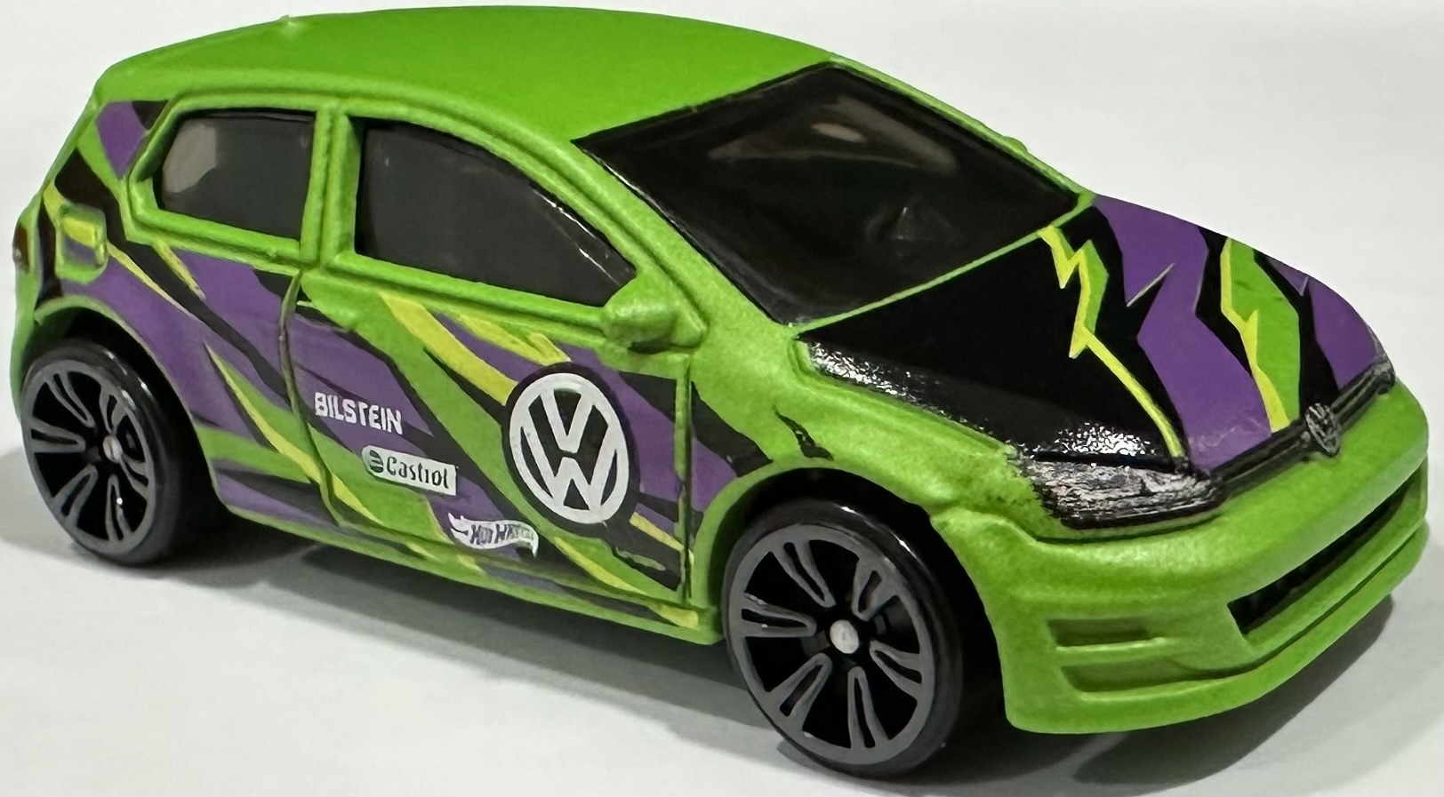 Neon green | Detailed headlights and taillights, neon purple, black and yellow paint splatter, Volkswagen logo on sides | Black / Plastic |