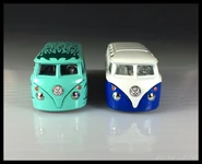 | 2001 | Hot & Classic - Bugs & Buses 4-Car Set | Pearl White & Blue Metalflake | Front signals , Door handles, rear plate , taillights & handle | Black / Metal |