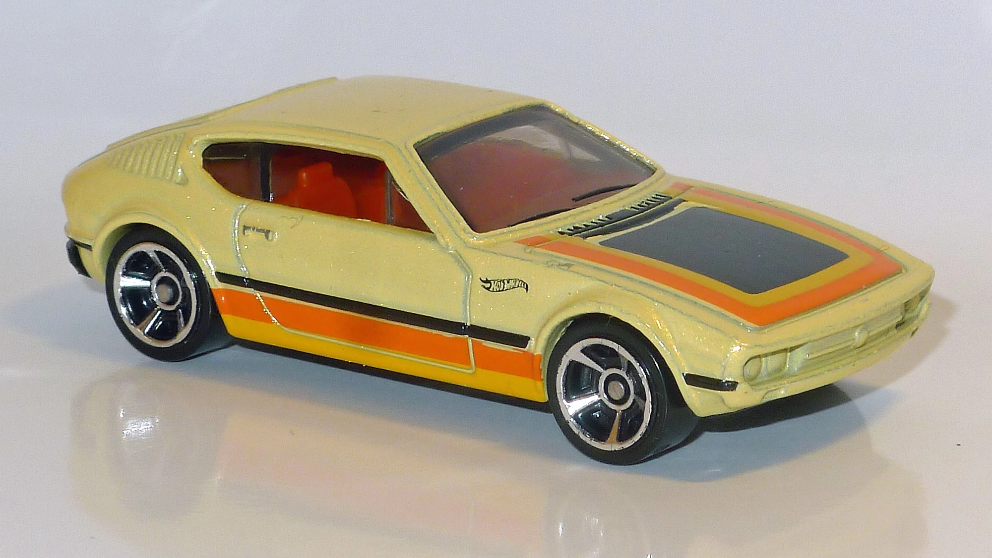 Metallic Pale Yellow | Orange, Yellow and Black Stripes on Sides and Hood | Black / Plastic |