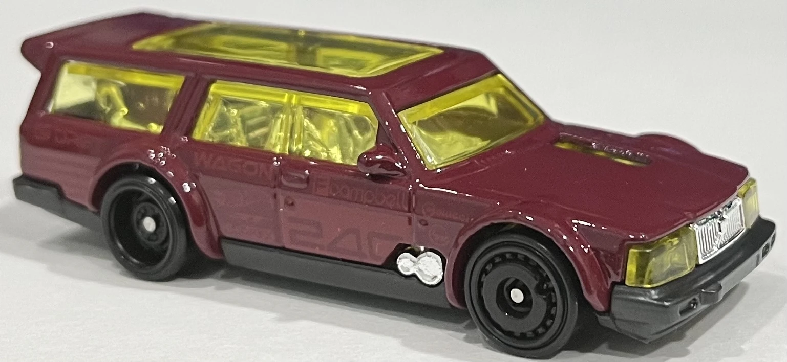 This casting depicts a Volvo 240 station wagon modified for drifting. Dogs can be seen in the rear.